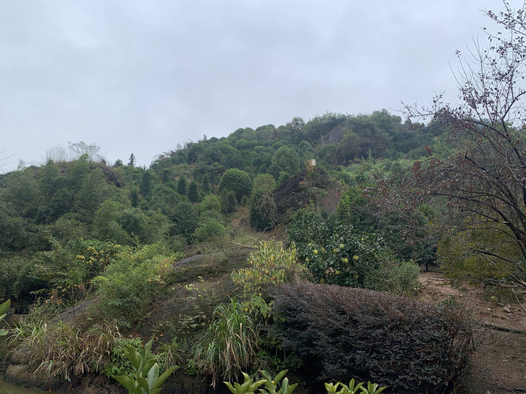在A君承包的山上一年四季都种有水果,种植着400多株的“丑八怪”也已快到了采摘的季节,在阳光下发出油亮的光泽,摘一个尝一瓣,亦是清香带点甜味,很是爽口。金桔树,则果子一个个挂满枝头,很是赏心悦目。 平时,A君还开垦出了3亩多的菜地,按照四季的不同种着青菜、萝卜、茄子、红薯、土豆等,常年养有300多只土鸡,还挖了一口水塘养鱼,一年到头除了买点猪肉什么的,吃的基本都是出自自己之手。 村里的一位老人介绍,借手坑的祖先,是从缙云过来的。刚开始是来山上烧炭,做篾、箍桶等营生。看到这里山青水秀风水宝地,就在这里长居下来。