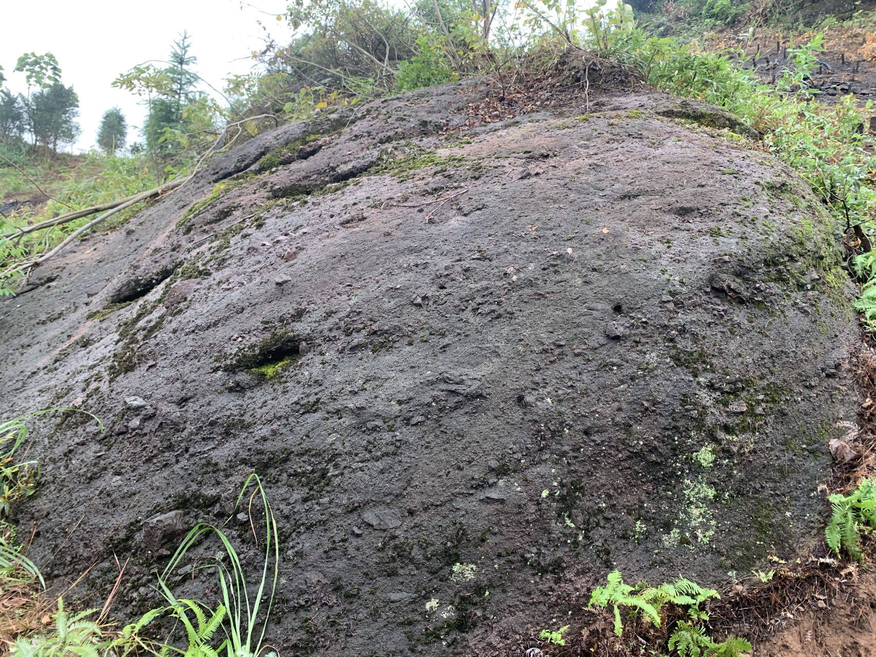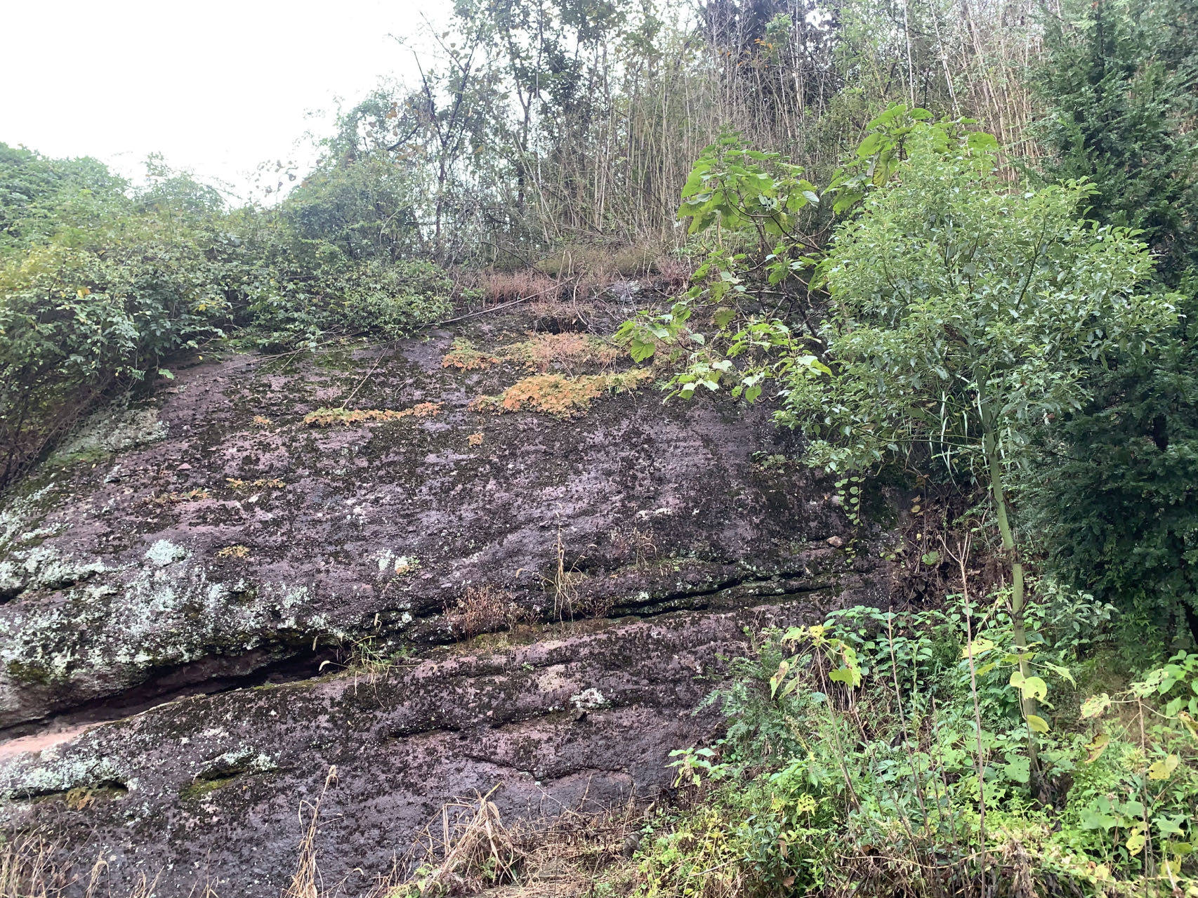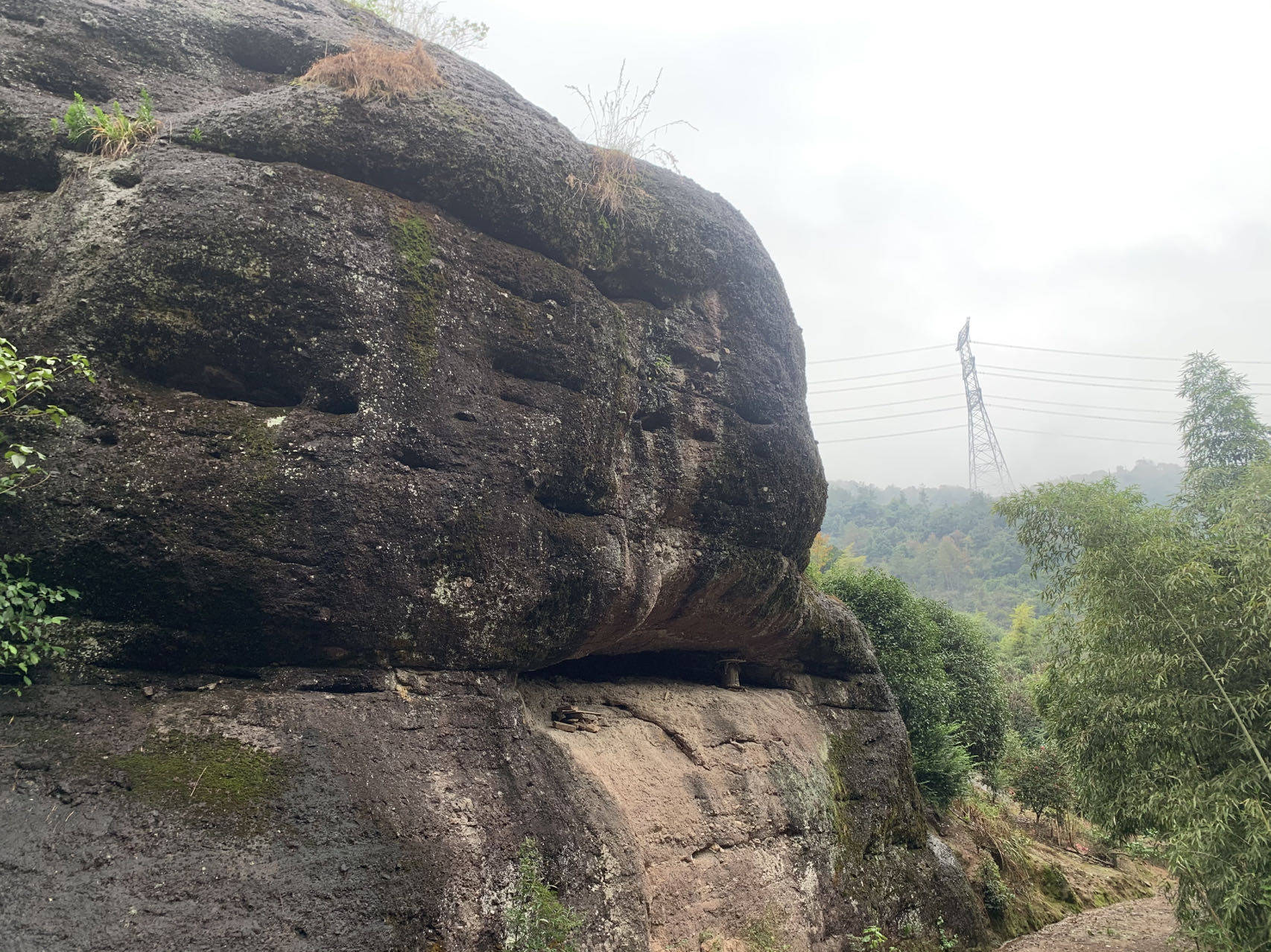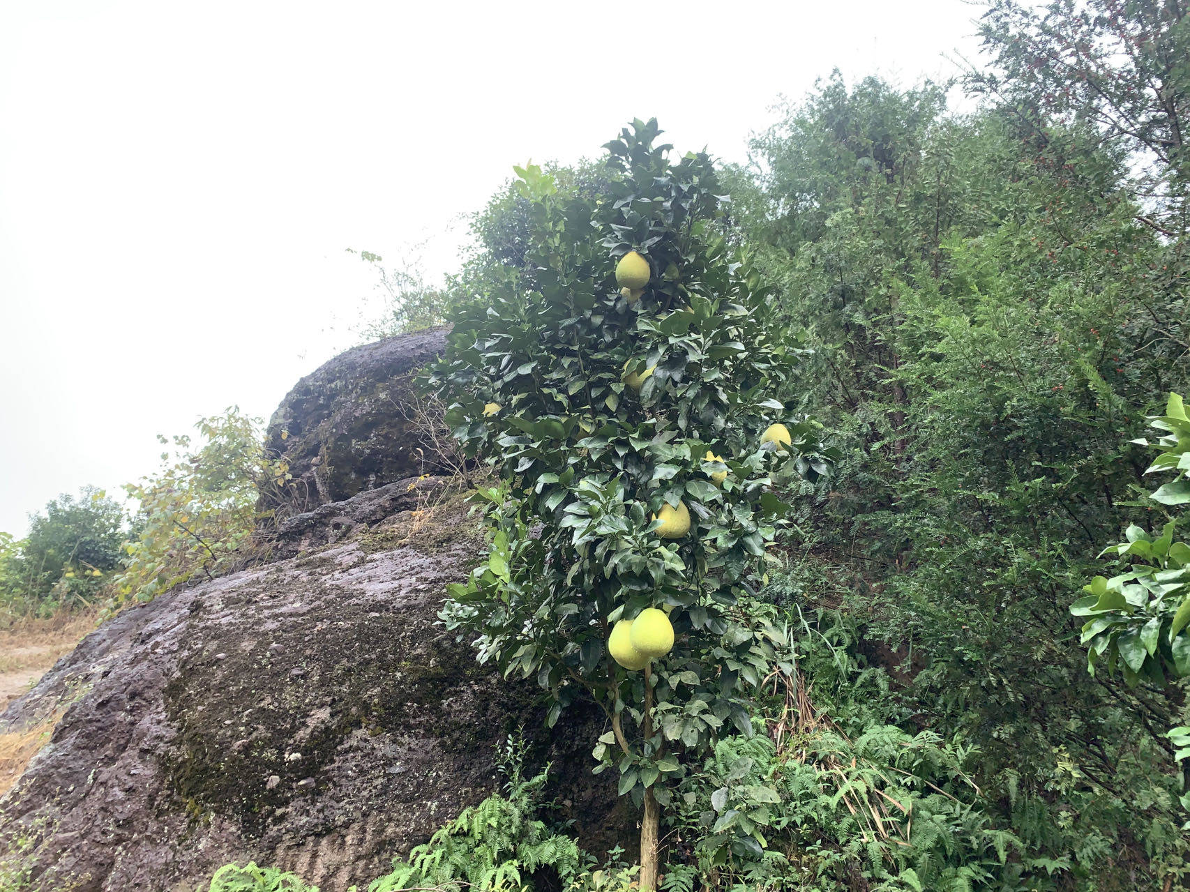 从百家山山脚往山上走去,一路上坡却不陡,东一块西一块的巨大石头,像是哪个顽皮的大力士神仙随兴安放,神态各异。A君说,这里的石头都是没有“根”的,村民们把这些石头称之为“活”的石头。果真如此,左侧一座石山,虽然看上去有些高,但一层一层分明,像是叠上去的一般,令人惊叹。而单独的石头,与身下的山体似乎不连在一起,如果谁力气够大,用两根木棍就能抬起来一般。 站在山上往远处看,一座有百来米的石块,很是壮观。A君介绍,这个村离石鹅湖景区驱车只要五六分钟,这块巨石另一头的下方就是景区的慈航洞府,为木石结构的慈航洞府尼姑庵。始建于唐代天佑年间,至今已有1000多年历史。洞中有一小石臼,传说日日自涌一臼白米,足够洞中尼姑吃穿用蔓,后来老尼太贪心,让人把石臼凿大些,结果石臼再也不涌出来了。