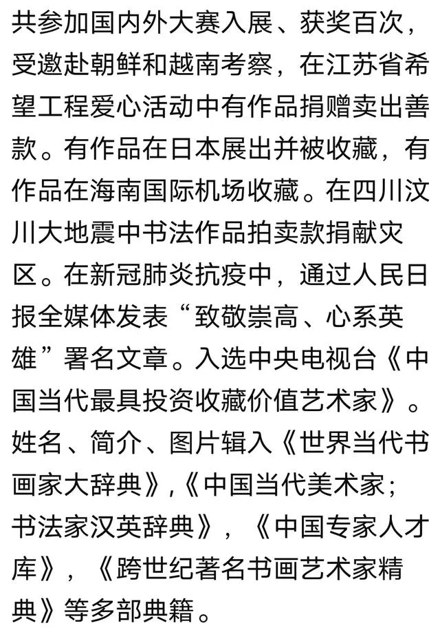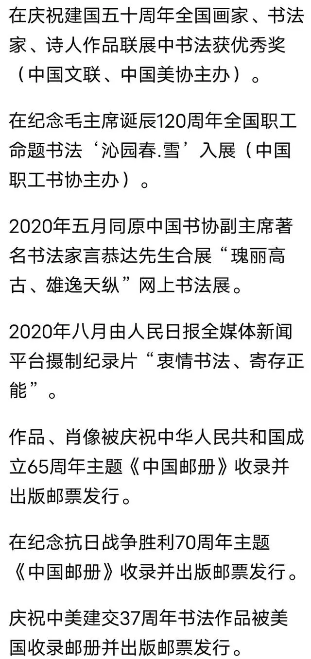 江山壮丽,人民豪迈,新时代的精品力作开拓文艺新境界,追求德艺双馨中成就人生价值,展示中国文艺新气象,铸就中华文化新辉煌,衡量一个时代的文艺成就最终要看作品,伟大时代的优秀作品。在中国文化领域,百花齐放,百家争鸣,产生了一大批享誉中外艺术界的华人艺术家,他们被尊为中国艺术的脊梁。赵从君老师作为新时代艺术家在文化领域的贡献和影响力是被全国广大文化者所认可和不可忽视的,值得每位文化学者赞赏和学习的艺术楷模榜样。 ![]() ![]()
