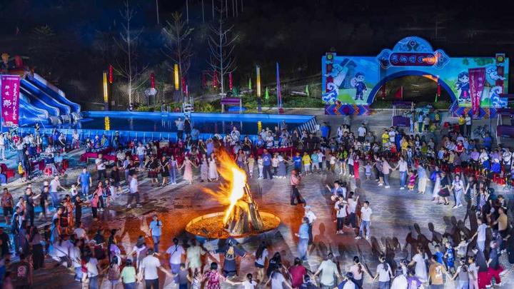 图为百色那坡县“尼的呀”文化旅游圩日里的篝火晚会 黄福宁 摄影