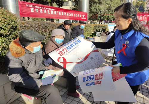 在禹州市中峰游园广场,禹州市禁毒志愿者协会联合市禁毒办、市疾控中心开展以“凝聚社会力量,合力共抗艾滋”为主题的禁毒防艾宣传活动。