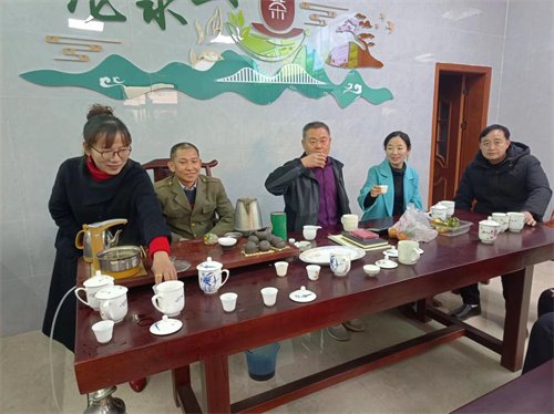 我们从龙泉山茶业基地的山坡上下来,陈茶艺师早就把煮了的茶水盛在十二个瓷杯里,挽留我们喝一喝龙泉山茶业制作的茶,盛情难却,我们端杯自饮,并不时地询问陈师傅,这茶是什么茶?他笑而答道:你们喝了就知道,尝了就能闻到它到底是一种什么味道。怪不得有人说,这喝茶还真有个讲究,什么人制作什么茶,什么茶什么味,一句话:有茶业企业就有茶文化,有茶山的地方就有故事,有茶艺人的妙手就有茶的味道。