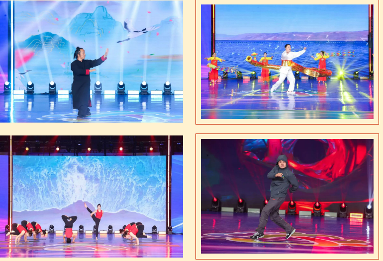 湖北省社体中心对本次全国社会体育指导员交流展示大会高度重视,为充分展示我省全民健身特别是社会体育指导员的工作成果,成立专班、统筹谋划、选派队伍,迅速与武汉、黄冈、十堰等市州体育部门及有关单位进行沟通对接协商,结合工作实际,精心选派组织4支队伍17人参会。在本次交流展示大会上,我省共选派黄冈健身瑜伽队、武汉和黄冈联合参演的彩带龙队、十堰八卦掌队、武汉街舞队共4支队伍,分别带来《银鸟飞行》、《龙凤呈祥》、《游身八卦掌》、《与地板共鸣》4个节目的展演,精彩的展演、丰富的内涵、专业的技能,频频吸引与会评委好评点赞及观众叫好喝彩。