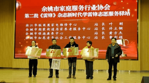 宁波总站站长胡道林为余姚总站第二批《雷锋》杂志新时代学雷锋志愿服务驿站授牌。