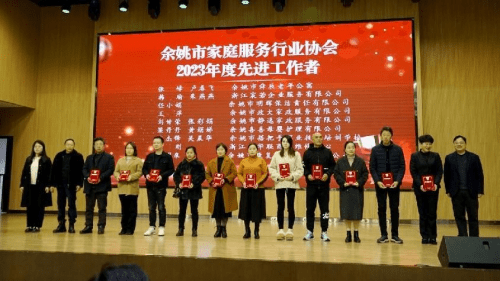 2023年12月31日下午,余姚市家庭服务行业协会第五届第五次会员大会暨2023年度年会在余姚市舜辰老年公寓艺苑隆重召开!市商务局副局长何建军,市商务局机关党委书记张焕麒,市民政局副局长朱建梁,市市场监督管理局个体劳动者协会秘书长谷峰,市医保局(长护险)科长谢骞,原余姚市社会科学院常务副院长杨鹏飞,原宁波市81890服务中心主任胡道林,宁波市职业技术学院健康服务与康养学院院长、宁波家政学院执行院长朱晓卓教授,宁波市家庭服务业协会会长王培红,宁波市家庭服务业协会荣誉会长莫小芬,市商务局人事科副科长孙红霞等领导和嘉宾到会并表示祝贺。本次大会由市家协副秘书长陈婕主持,市家协会长及副会长、党支部书记、理事、监事会成员、会员单位及嘉宾共计100余人参加了此次盛会。