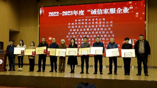 本次年会还邀请了市市场监督管理局和商务局领导为获得2022-2023年度“诚信家服企业”荣誉称号的企业(商户)进行颁奖。
