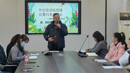 会议最后,校长谢晓燕做总结性发言,谢校长充分肯定了四位老师外出学习的成果,参加比赛取得的优异成绩。四位老师通过此次分享交流活动充分发挥了学习的辐射引领作用。“走出去,引进来”也将成为今后学习培训和参加比赛的一项重要措施。谢校长希望老师们认真领会与学习,把培训实践成果和比赛经验转化到实际的教学工作之中,使学校的教学质量再上新台阶。