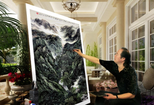 大秦山脉壮丽恢弘,而纵观今日邓福邦先生的众幅丹青画作,其画中题材便也就是有根植于大秦山之景!多年来,邓福邦先生足迹踏遍大秦山,只为能够在写生览物之时寄情怀于胸中,测山川之形势,度地土之广远,审峰嶂之疏密,识云烟之蒙味继而在创作时可以精骛八极,心游万仞!不仅如此,邓福邦先生之所以选择以大秦山为创作背景,其原因还有另一方面,那就是人文与历史的双重厚度!从中国龙脉的起源到千年古道和三河汇聚,再从老子著经到隋朝壁画的发现,每一项都是中华文化历史中的重大辉煌!所以从这一角度上来看,邓福邦先生的这些山水画作也就不仅仅只是一种艺术的体现,而应该是一种民族文化的推崇载体和精神弘道!在笔墨技法上,邓福邦先生也同样是有深谙于笔以立其形质,墨以分其阴阳,山水悉从笔墨而成的创作要论!所以看他画中的笔墨,既是可见笔法的骨力强劲,也是可见墨法的浓淡相参,创作山水遂心应手,从点到线,从勾到皴,无一不是巧思构意!山石险峰气势磅礴,云水林木曲径通幽,由此纵览之余,俨然一派正大气象也,让人可以见青烟白道而思行,更可以见平川落照而思望!制度时因,搜妙创真,浩然山水,雅俗共赏!当代大秦山脉的艺术弘道者。
