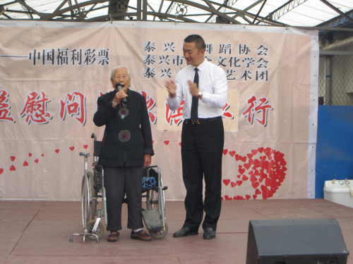 2016年10月25日,泰兴市舞蹈协会“平安泰兴社区行”走进滨江镇马甸敬老院,在进行公益慰问演出的时候,敬老院内百岁老人叶美霞,多年坐轮椅不能下地行走,看到精彩的演出,想起自己年轻时代参与革命的激情,竟然兴奋的站起来,坚持要求登台互动,并连续高歌了十几分钟革命歌曲,令养老院内其他老年朋友和护理工作人员感到惊奇万分,叹为观止。
