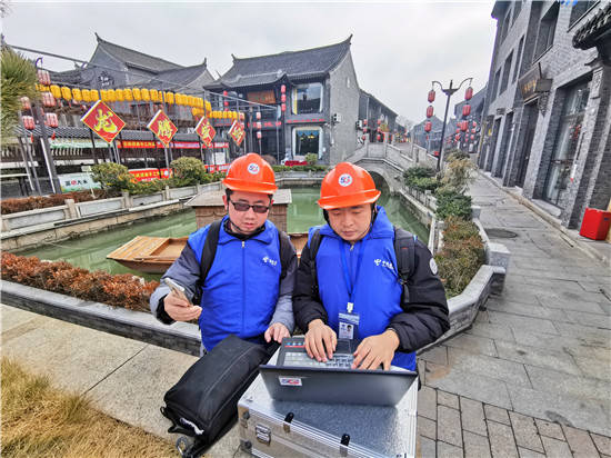 中国电信淮安分公司无线网络优化人员加班加点对文旅景区及高铁站、机场等重点场景开展5G网络优化提质测试,进一步提高客户的电信5G网络使用感知。图为1月21日,淮安分公司5G网络优化人员在千年河下古镇测试信号的场景。