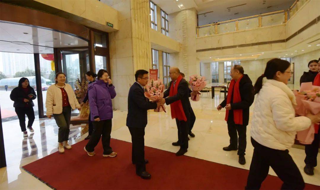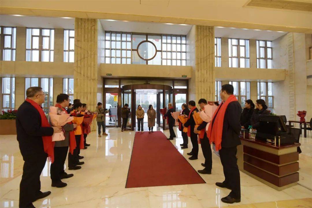 2月18日, 在新春的第一个工作日, 临商银行总行开展 “拜年送鲜花”活动。 一大早,党委书记刘成田 带领党委班子成员、高管 在总行一楼大厅门口, 手捧鲜花,面带微笑, 迎接每一位同事到来, 亲切地与大家握手, 送上新春的祝福。