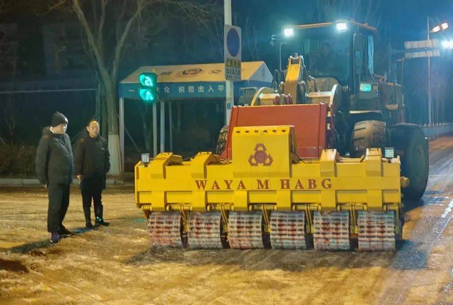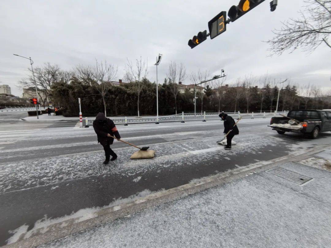 各部门单位昼夜不停,合力攻坚,采取巡回作业方式,出动除雪车、撒防滑沙及融雪剂,重点对主次干道、坡道路面的冰雪进行清理,为群众出行保驾护航。