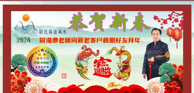 笑送玉兔辞旧岁,喜迎青龙迎新春,在中华传统佳节(春节)来临之际,新时代国学影响力人物、中国管理科学研究院品牌推进委员会客座教授、知名的中医战略科学家,当代著名的堪舆地理学家、中华孝文化传播者与践行者、华夏人文出版社签约国学研究学者、第九届中华传统文化创新发展论坛组委会执行主席兼专家组特聘专家、“二经道师”尉汤渺先生在传统文化研习基地浙江会嵇山携浙江绍兴南易文化传播有限公司全体员工向亲朋好友及国学同仁同修问好,向普天下父母老前辈拜年,恭祝大家在新的一年里身体健康、万事顺意、和家欢乐,事业红红火火,家庭和和美美。愿同仁同修同道在甲辰龙年智慧如龙、志在千里,龙年乘龙气,扬帆起航,智慧如龙眼观六路,通透世事,如灵龙穿越时空,跨越挑战,迈向成功发展之路。 2024 龙年走鸿运,万事皆坦途,所祈皆所愿,梦想皆成真。
