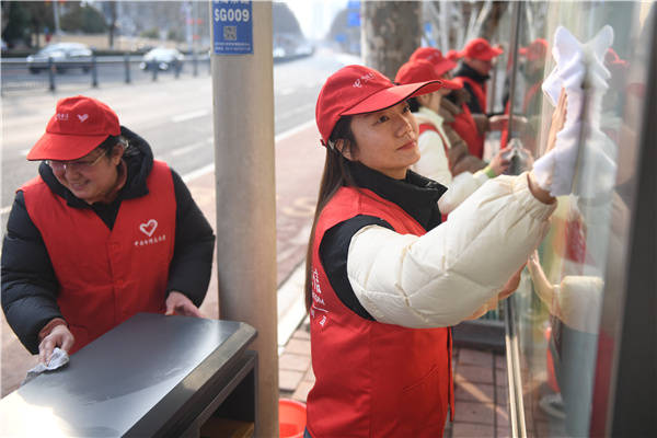 3月1日,中国电信淮安分公司客户维护支撑中心爱有天翼志愿者开展学雷锋志愿服务,电信志愿者到淮海东路延线清洗公交站台、站牌、坐位、垃圾桶等,以实际行动弘扬雷锋精神。