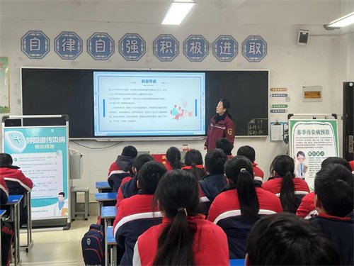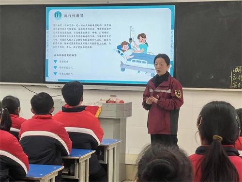 因春季为传染病高发季节,而学校又属于人员密集场所,所以在全国爱耳日宣教活动结束后,杨玉笛又针对春季传染病从传染病的种类、传染病流行的环节、传染病的防护措施等几个方面为孩子们进行了详细地讲解。她通过理论联系实际的方式,运用简单朴实的语言为学生重点介绍了流感、水痘、流行性腮腺炎等春季常见传染病的防护措施,并建议同学们平时要加强体育锻炼,注意个人卫生,保持良好生活习惯,在校在家要勤洗手、常开窗、多喝水、均衡饮食、保证睡眠。
