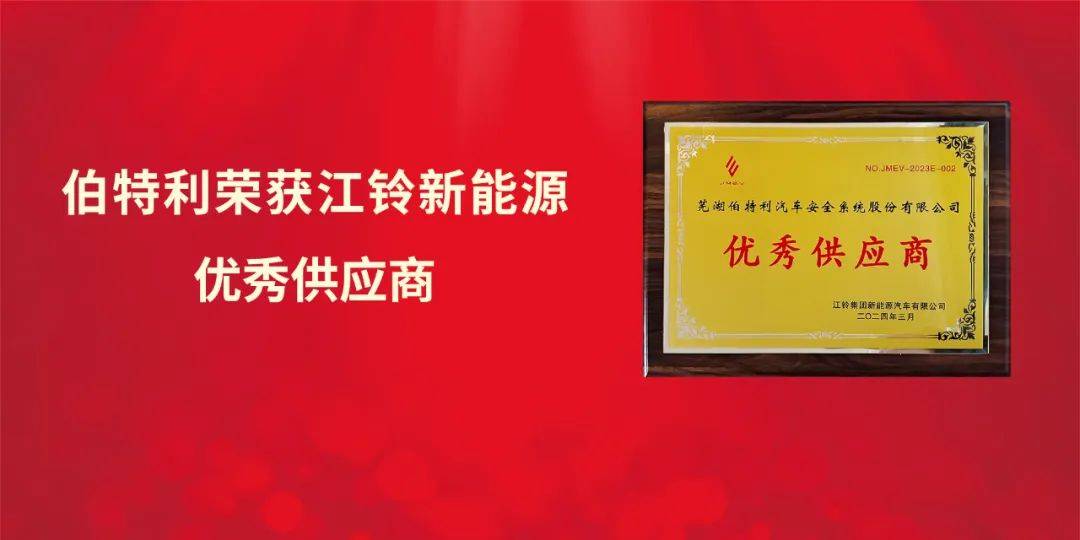 2024年3月4日,江铃新能源供应商合作伙伴大会在南昌召开,伯特利凭借在制动领域强大的科研实力和稳定的供货表现,荣获江铃新能源2023年度“优秀供应商”。
