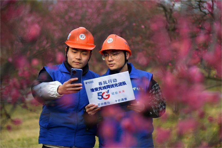 春回大地,万物复苏。中国电信江苏淮安分公司无线网络优化人员针对市区重点旅游景区开展5G网络精细优化与信号升格春风行动,着力提升网络运行质量,强化客户服务感知。图为3月7日,淮安分公司网优化人员在古淮河景区测试无线网络覆盖情况,保障游客手机一直处于满格信号。