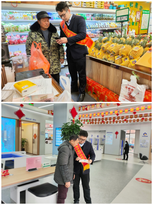 姜堰支行团支部组织青年员工走进社区、市场,开展了义务宣教活动,向市场商户和购物的居民普及金融知识,宣传消费者权益、人民币真伪鉴别、防电信诈骗小知识。