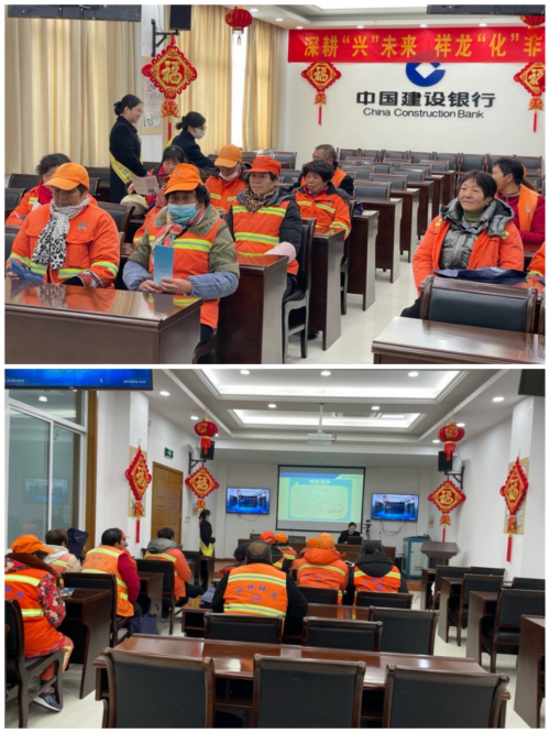 兴化支行志愿服务队深入社区,邀请兴化市环卫处职工走进建行开展金融知识教育宣传活动,提升金融消费者金融素养和风险防范意识。