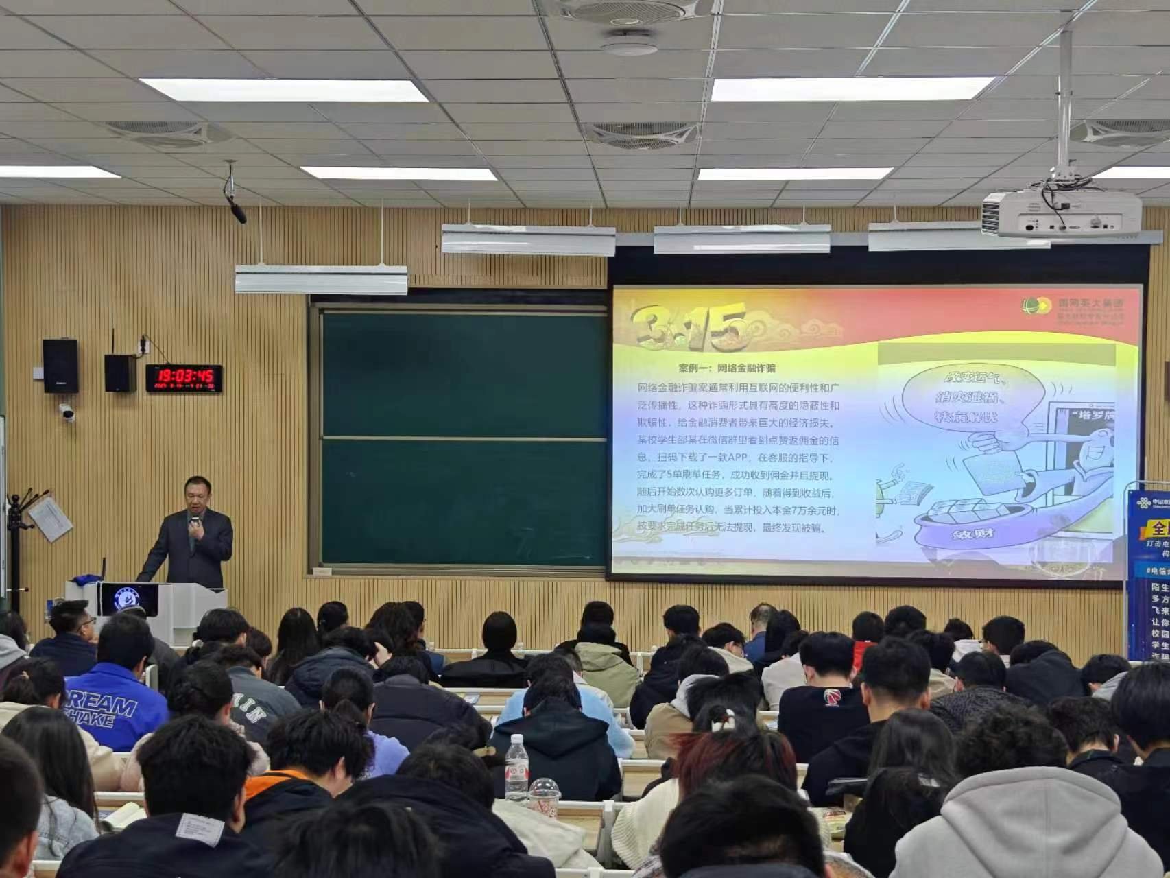 当晚,英大财险宁夏分公司联合学院党支部开展“金融高管讲消保”知识讲座。英大财险宁夏分公司高度重视本次知识讲座,由分公司总经理担任讲师,围绕“金融消保在身边 保障权益防风险”主题,为学院师生普及金融消费者八项基本权益,宣讲了消费者个人信息保护、反电信诈骗、校园网贷、保险诈骗等多方面金融知识,以“案教结合”的方式,列举了常见的欺诈途径和手段,讲述了如何加强个人信息保护以及校园网贷的严重危害和后果。活动现场还邀请到通信网络安全专家和银川供电公司相关领导讲授了网络安全与用电安全常识。
