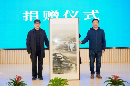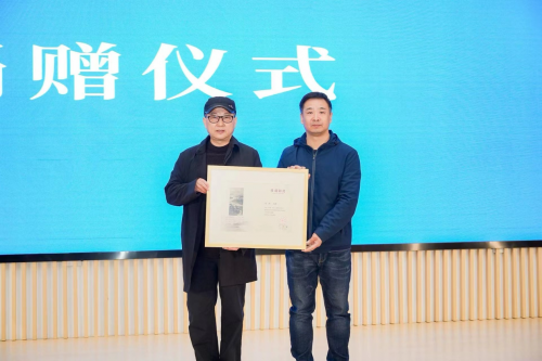 随后,陈辉教授向盐城市美术馆捐赠艺术作品,用于盐城市美术馆的艺术陈列与研究,盐城市美术馆副馆长、盐城市书画院副院长陈曦接受捐赠并向陈辉教授颁发了艺术作品的捐赠证书。 开幕式最后,盐城市政协副主席徐龙波宣布展览开幕。