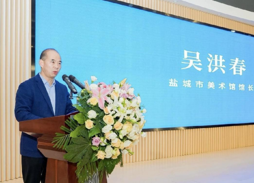 盐城市书法家家协会主席、盐城市美术馆馆长、盐城市书画院院长吴洪春主持开幕式