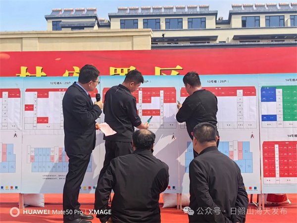 在工作人员的引导下,村民们按序排队,按照流程签到、审核、选房、签字确认……整个选房过程有条不紊、顺畅高效,半天的时间顺利完成分配,村民们的安居梦得以实现。