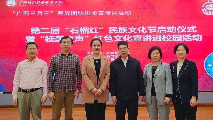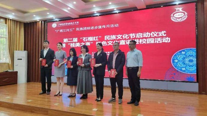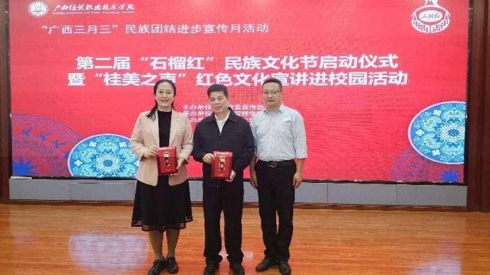 花开石榴红,九九同心梦。 民族大团结,九韵铸华章。 广西三月三来临之际,为加深学生对中华民族多元一体格局的认识,增强民族自豪感和国家认同感,促进各民族学生之间的交流与团结。2024年4月9日下午,由广西经贸职业技术学院党委宣传部主办,广西经贸职业技术学院商贸管理学院、“石榴红”辅导员工作室承办,广西规划馆、广西民族博物馆、广西民族报社协办的第二届“石榴红”民族文化节启动仪式暨“桂美之声”红色文化宣讲进校园活动,在广西经贸职业技术学院青山校区6101报告厅拉开帷幕。林忠伟咨政工作室智库专家团一行9人应邀和来自有关单位和在校大学生共200多人参加活动。 整个活动按照流程展开:广西规划馆“桂美之声”红色文化宣讲团主题宣讲、广西红色文化视频《红色故乡广西篇》、红色故事宣讲《忠诚界碑护边关》、红色故事宣讲《岁月无疆,英雄不朽》、诗朗诵《强国有我》、商贸管理学院“石榴红”学生工作品牌专家指导团聘任仪式、民歌会、民族文艺互动、民族风采展示、民族美食体验等。活动在民族和谐、祥瑞美好、文艺展演、热烈奔放、欢乐开怀的气氛中取得圆满成功。 “石榴红”:学生工作品牌创新发展 广西经贸职业技术学院商贸管理学院“石榴红”学生工作品牌建设以“铸牢中华民族共同体意识”为主线,围绕落实立德树人根本任务,依托我区独特的民族文化特色,结合专业建设,服务农产品现代流通,助力乡村振兴,从专业课程思政推进、传承中华优秀传统文化、弘扬民族文化、开展社会服务、促进国际交流等方面着手,丰富新时代高校人才培养的内涵,创新新时代高校全方位育人新方法,结合专业实践,形成可操作、可示范、可推广的实践经验和成果,打造具有鲜明广西特色的高校学生工作品牌。 “石榴红”学生工作品牌经过一年多的建设,已设计出具有辨识度和美感的视觉形象,以便更好地传达“石榴红”的理念和文化内涵。到目前为止,“石榴红”品牌形成9个板块的内容: (一)花开石榴红,互市商旅忙 在广袤的中华大地上,民族地区的边境贸易如同一颗颗鲜艳的石榴,既富有活力又充满魅力。石榴的红,象征着繁荣与昌盛,也映射着民族地区边境贸易的生机盎然。互市,作为边境贸易的一种重要形式,承载着促进民族团结、推动经济发展的重要使命。在这里,不同民族的商人们汇聚一堂,他们操着各自的方言,用丰富的商品和灵活的贸易方式,编织起一张紧密的商业网络。无论是生活用品、特色食品,还是手工艺品、民族服饰,都在这座互市的舞台上找到了属于自己的位置。然而,要让民族地区边境贸易持续繁荣,仅靠传统的贸易方式是不够的。通过国贸专业,培养学生利用自己的专业知识和技能,运用国际贸易的新兴业态助力民族地区边境贸易的转型升级,为民族地区边境贸易带来新的发展机遇。物流国贸专业群助力民族地区边境贸易,立足边境,服务边民,促进边贸高质量发展。 1.组织学生深入民族地区边境进行实地调研,了解当地的贸易状况、边民需求以及物流瓶颈等问题。通过与边民、商户和当地政府的沟通,明确专业服务的需求和方向。 2.基于调研结果,设计针对边境贸易和物流国贸的专业课程,提升学生在这方面的理论知识和实践技能。同时,可以邀请行业专家进行讲座或工作坊,分享行业前沿动态和案例。加强校企合作,促进边贸地区经济发展。通过走访边贸地区的企业,开展调研活动。了解企业实际人才需求,及时调整专业设置和课程体系构建,签订校企合作协议,加强“订单式”人才培养,构建边贸+物流,边贸+国贸的边贸+模式。 3.鼓励学生参与边境贸易和物流相关的项目实践,如帮助当地商户优化物流方案、设计边境贸易推广活动等。通过实践,学生可以将所学知识应用于实际,同时增强与社会的联系。鼓励学生参与志愿服务活动,如为边民提供物流咨询、帮助推广边境贸易产品等。同时,可以与当地社区或组织建立合作关系,共同推动边境贸易和物流的发展。 (二)花开石榴红,果硕乡民乐 石榴红遍山头,果实累累的景象让人欣喜。这不仅是自然的馈赠,更是乡村振兴的生动写照。市场营销专业群的学子们,肩负着推动乡村振兴的使命,深入乡村,与乡民们共同探索乡村振兴产业的繁荣之路。市场营销专业群促进乡村振兴(聚焦乡村振兴项目、产品,开展专业调研以及大学生暑期“三下乡”社会实践活动)。 1.聚焦乡村振兴项目和产品,深入田间地头,开展专业调研,了解其发展现状、市场需求和存在问题,为乡村的经济发展提供精准的市场定位、品牌建设。暑假期间,更是积极响应团区委的号召,开展“三下乡”社会实践活动,组织大学生深入乡村,开展与乡村振兴项目和产品相关的实践活动,如农产品推广、乡村旅游策划等,在实践中能够发挥专业优势,实现教育与社会的良性互动,为乡村的振兴贡献青春力量,连续多年获评自治区重点团队。 2.鼓励大学生毕业们返乡就业创业,利用所学的专业知识和对乡村的深厚情感,投身于乡村建设,开发特色农产品,推广乡村旅游,为乡村带来新的生机与活力。对于有创业意愿的学生,学校可以提供创新创业的支持和指导,如提供创业基金、创业孵化器等资源,帮助学生将创意转化为实际的创业项目。不仅能为乡村带来新的发展理念,更为乡村注入年轻的血液,推动乡