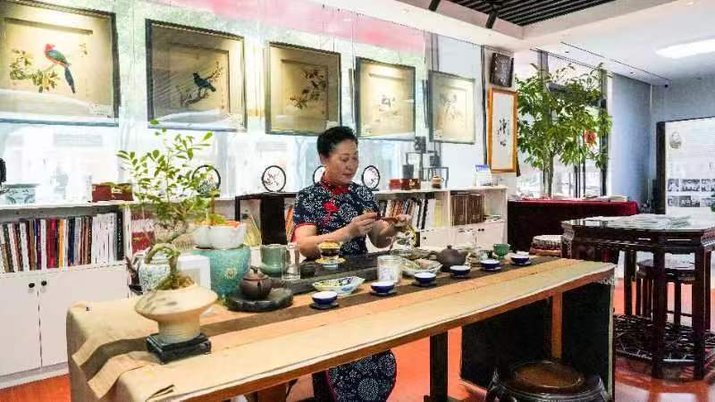 国家级非遗苏绣是中国历史上最早的刺绣工艺之一,而其中最著名的艺人便是沈寿,被誉为绣圣,沈寿与南通的张謇先生的相知相惜发乎情止乎礼的情感故事创办南通女红传习所,为南通培养出了一批技艺精湛的绣女新的绣种:沈绣仿真绣。《东方美》艺术团以一针一线以清末民国时期为时代背景,以沈寿为代表的绣女们为故事原型,将绣女刺绣动作加以提炼,身着非遗蓝印花布旗袍配上《沈绣通韵》:以套针为主、结合打籽绣、㧙针和虚实针等加上舞蹈动作:立落冲拧.沉靠扣撇等及旗袍秀手位:遮太阳、半掩眼睛显可爱、轻摸脸夹、贴锁骨、点肩膀、优雅双抱臂、搭手腕、右手按左胸仪式感、行注目礼相结合,用创新思路运用到演绎中,蓝印花布的颜色是蓝白色,加上沈绣的五彩记忆形成跨界的结合,体现沈绣作品《捣练图》中人物灵动的姿态。发展和传承,创新是发展的需要,卢爱美会长自“领舞”十四年来信心满满,一如既往坚持必须把,非遗要融入到生活里去走进敬老院、大商场、公园校区及各界社会空间。如果说一个作品一成不变的话,那非遗最终的归宿就只能还留在博物馆里,所以只有用实际行动带动身边的人。卢爱美会长围绕如何理解非遗、非遗有什么用、非遗保护的理念、创新非遗保护传承机制、非遗保护的重点工作、让非遗美好生活等方面分享了新时代背景下非物质文化遗产保护工作的新思路、新路径。未来,《东方美》文化艺术研究非遗品牌,为大众服务宗旨的前提下将继续精研,坚定树以东方美文化特色的旗帜,在卢爱美会长的带领下,更为深入挖掘各项非遗项目精粹,让非遗瑰宝造福全社会、为中国非遗综合元素复兴添砖加瓦、为江海非遗肩担己任,为家乡如东促进有价值的文化艺术生活贡献力量! |