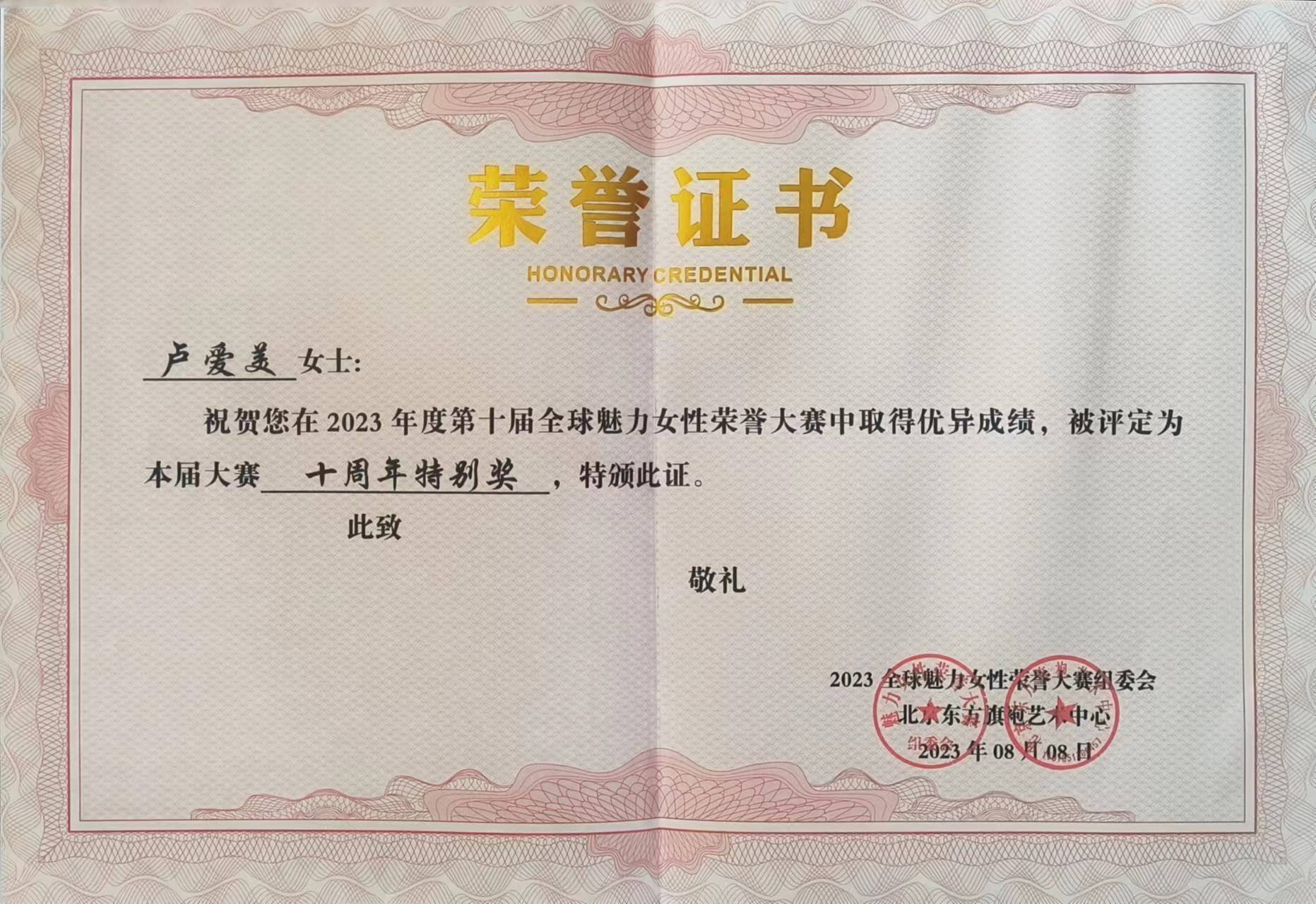 现任江苏南通如东旗袍会会长、东方美旗袍俱乐部创始人、江苏省文化形象代表人物、中国文化艺术人才:(舞蹈艺术测评)模特考官、中国管理研究院职业高级优雅模特形体导师评委及评审官、如东县长牌研究会副会长、非遗蓝印花布江海情组织者、中国国际旗袍文化艺术节云锦旗袍世界文化大使南通赛区首席拓展者、岔河莲花落(乐)民间舞蹈策划者、如东体育舞蹈运动协会理事长、荣获CCTV中学生《星光璀璨》栏目全国运营部授予的“公益先锋人物”荣誉称号等。她亲自传授首席千人旗袍秀方阵圆满成功,得到政府领导们和广大群众的一致好评和赞誉,拥有地方服饰特色,团队全力打造中华服饰原创节目,依托文化得以延续,如今的旗袍文化已经走向世界,惊艳了的中式风韵,旗袍作为中国风的一种代表符号传播,少不了她携手共进女性们的身影,她获得了华服中国形象大使“领军人物”殊荣。继《东方旗袍艺术中心》连续授予全球综合评选最佳组织奖,成为全球榜样的力量!2020在特殊时期列入全球百位杰出旗袍人代表之一,首创东方美画刋正式出版,连登5期,经评审荣获贡献奖。卢爱美会长总策划总导演26期感恩盛典,先后又出资10多万以奖品形式一边鼓励大家参加各界大小型活动,会员普及桃李满天下,一边还发扬“学雷锋精神”做中国好人。鉴于她在文化传承和文化惠民方面的突出表现,2024年1月28日,她荣获“中国影响力人物”奖牌。 “致敬最美奋斗者”《东方美》第27期感恩盛典暨非遗综合元素汇编文化艺术展演赛正在进行,每期通过活动每次为国家为组织精选输送人才,一直奔赴在新时代科技创新的路上。江苏南通如东旗袍会,团队名《东方美》已形成了一道名符其实的亮丽的风景线,南通爱美文化传媒工作室欢迎您,万紫千红定格国色天香,千姿百态讲述卓越人生,深⼊实施⽂化惠⺠⼯程,丰富⼴⼤群众的⽂化⽣活,进⼀步推动⽂艺事业繁荣发展。