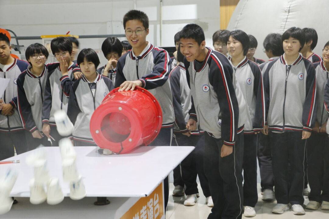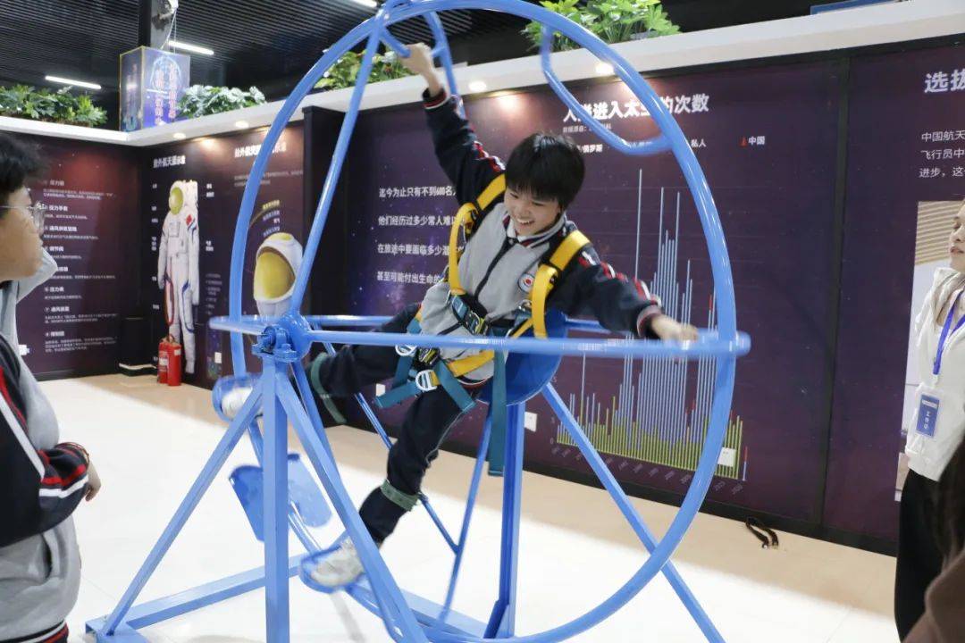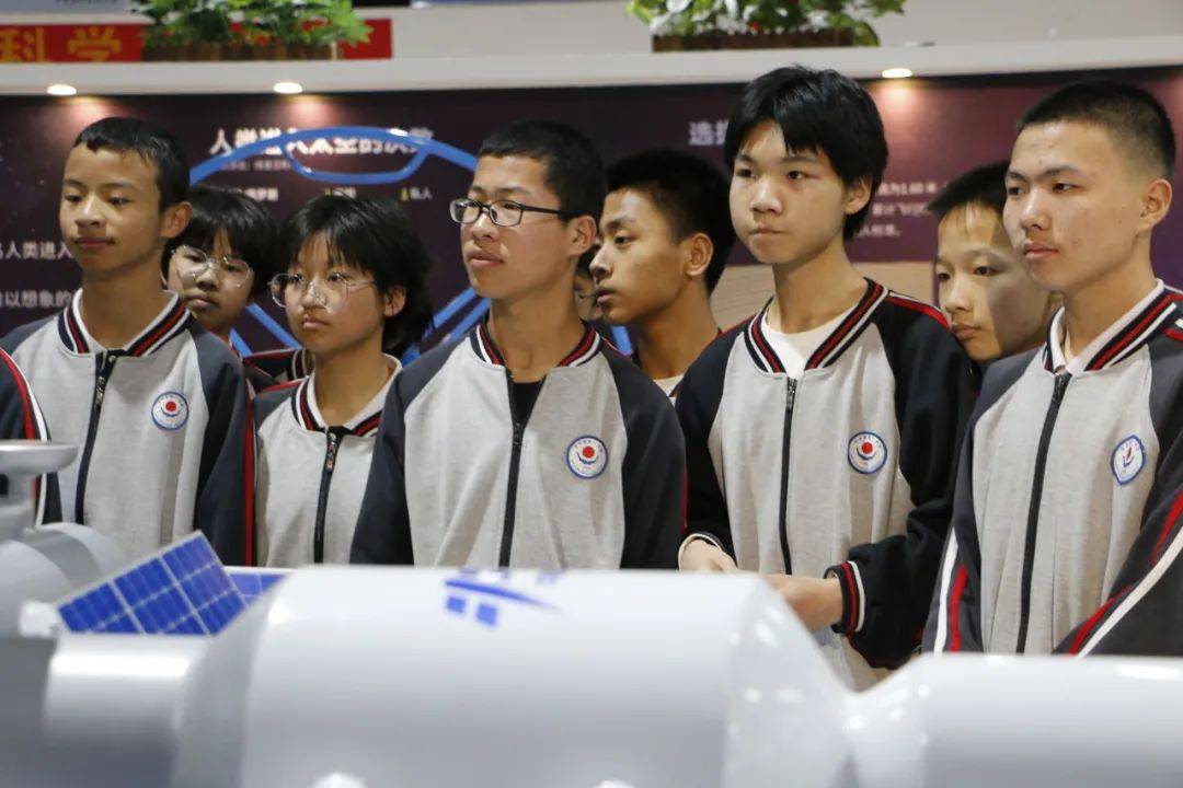 在不同的展览区域,各类科技元素展品琳琅满目,讲解员带领同学们陆续参观各主题区域并生动细致地讲解各个展品的原理。同学们沉浸在物理学、化学、人工智能及大国重器等科技展品的体验中,他们仔细观察现象,认真记录科技原理,积极参与各种互动。