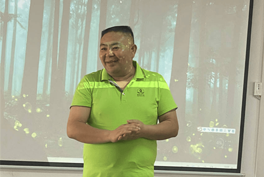 图为:广西农业产业行业协会郎会涨做了《绿色农业发展前景的挑战与机遇》主题分享。