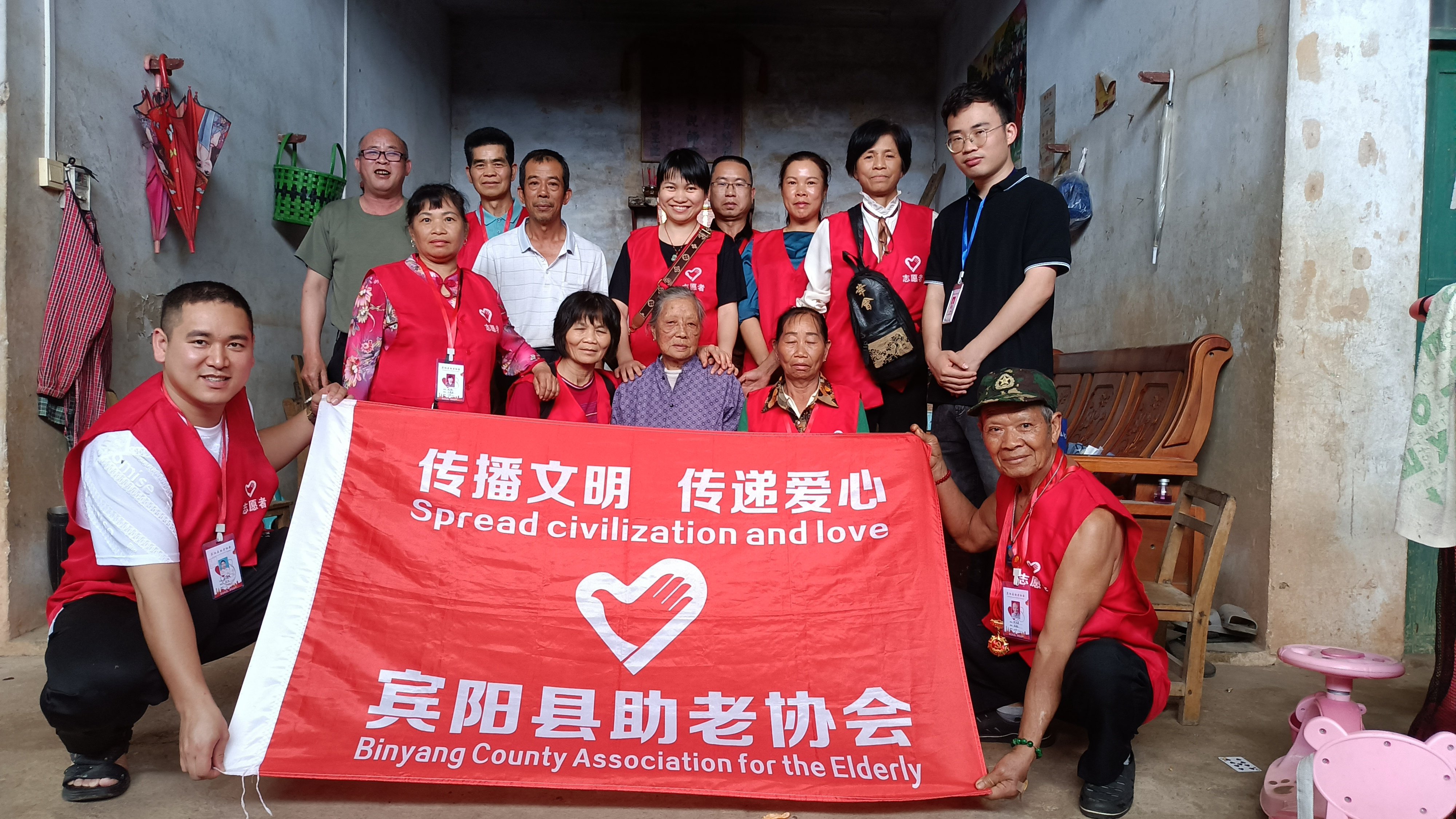黎塘镇人民政府干部:陈思伟,带领宾阳县助老协会在黎塘镇农业村105岁老人:黄钦儒(老爷爷),由于下午时间去到老人家的时候,老人在午休,就没有看见老人。