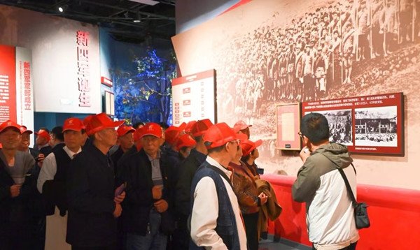 在新四军纪念馆,一张张照片、一行行文字、一份份史料和一幕幕模拟实景,宛若重现了新四军重建军部、浴血奋战的场景。在讲解员的引导下,大家满怀崇敬之情,依次参观序厅、主展厅、传承厅,认真听取讲解介绍,不时驻足观看。
