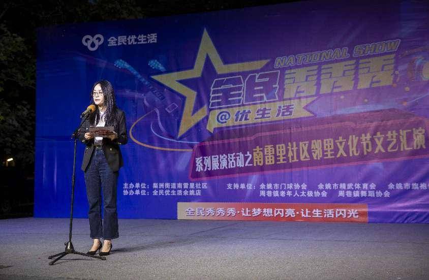 ——南雷里社区组织开展“邻里文化节之全民秀秀秀”公益演出活动 全民秀秀秀,让梦想闪亮,让生活闪光.为丰富居民的精神文化生活,给大家搭建一个展示自我的文体平台,4月27日晚上,余姚市梨洲街道南雷里社区携手全民优生活余姚运营中心联合举办“邻里文化节之全民秀秀秀”公益演出活动,给大家带来一场身心愉悦的文体盛宴!
