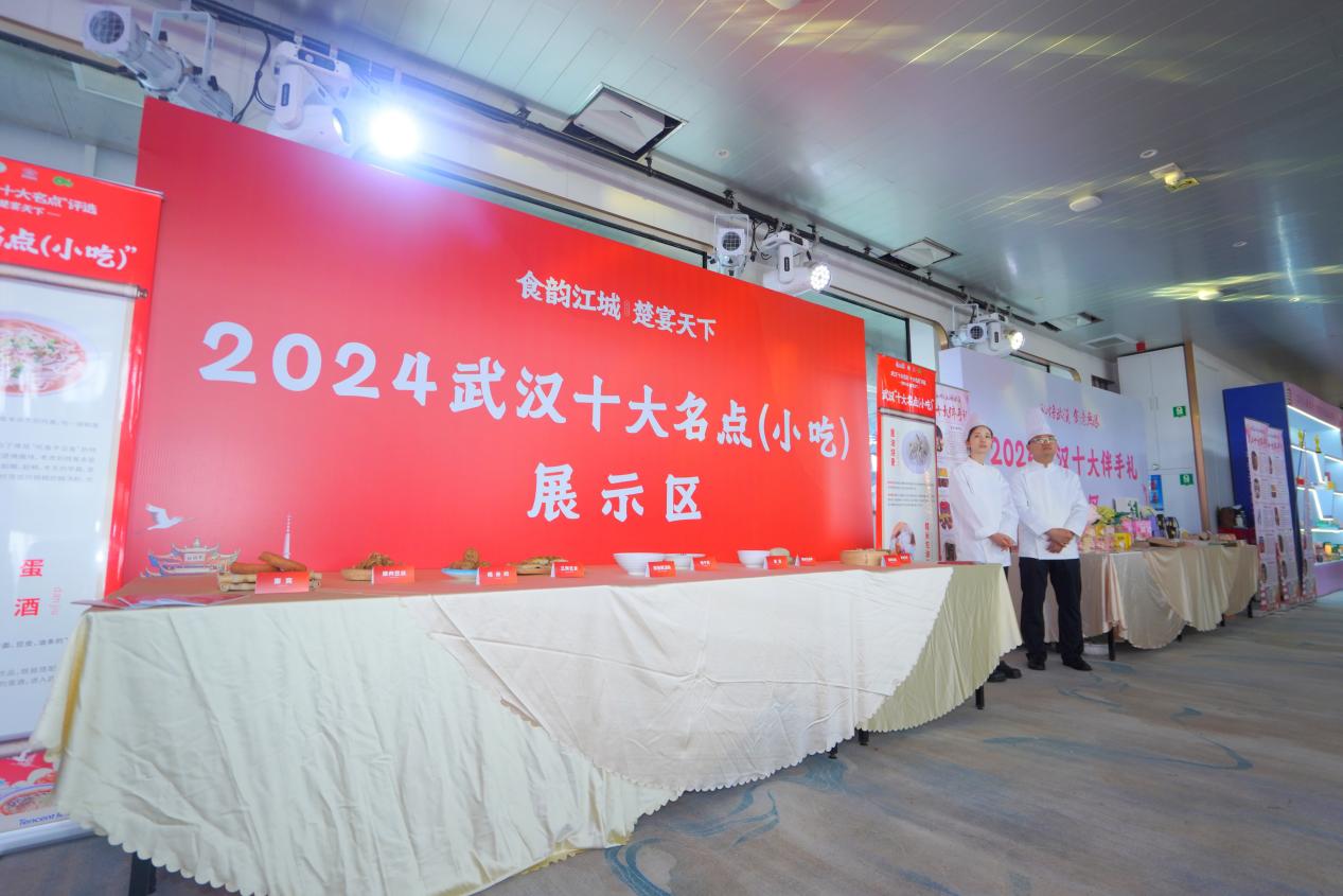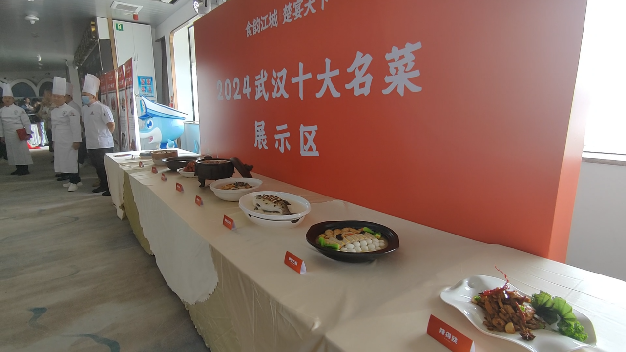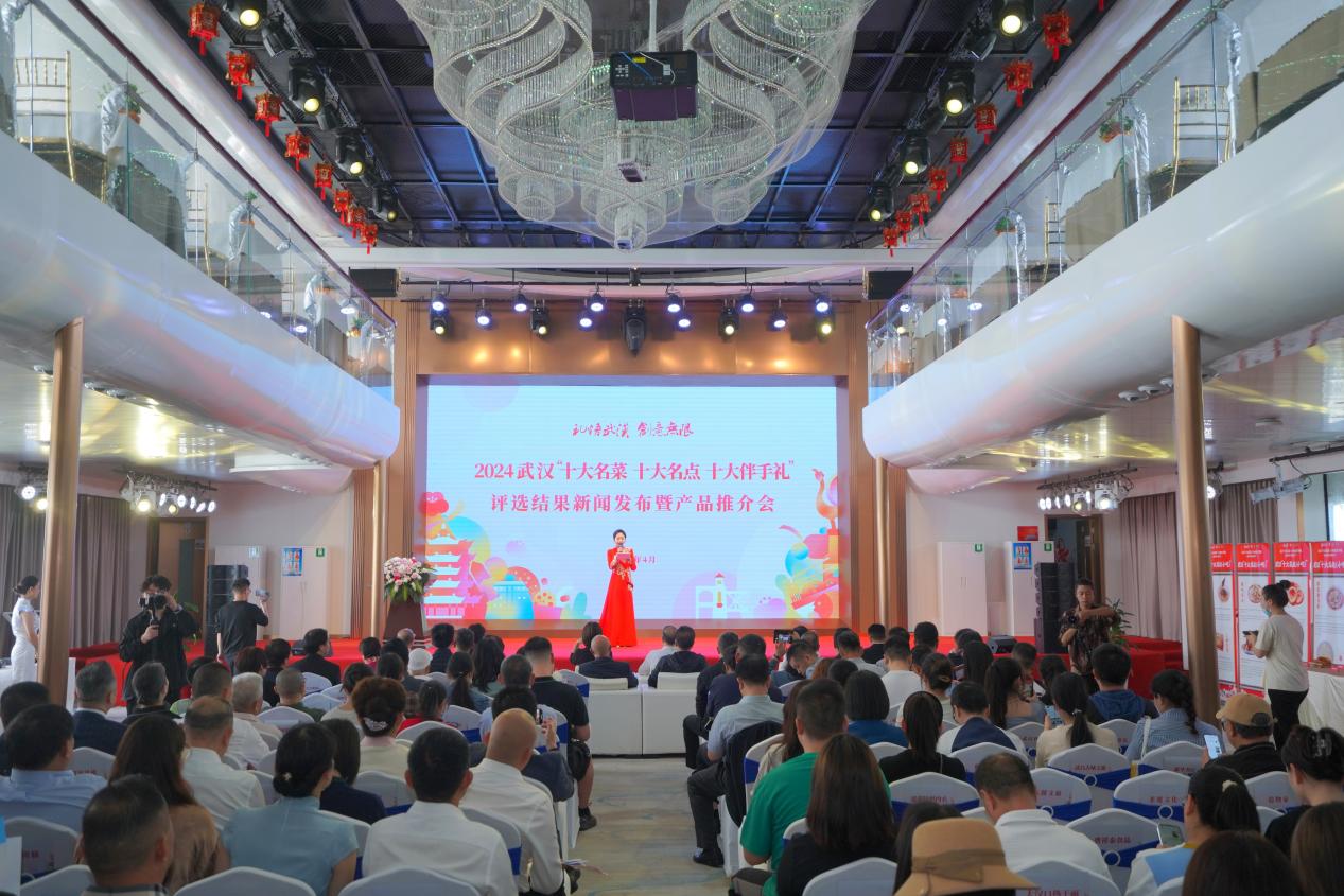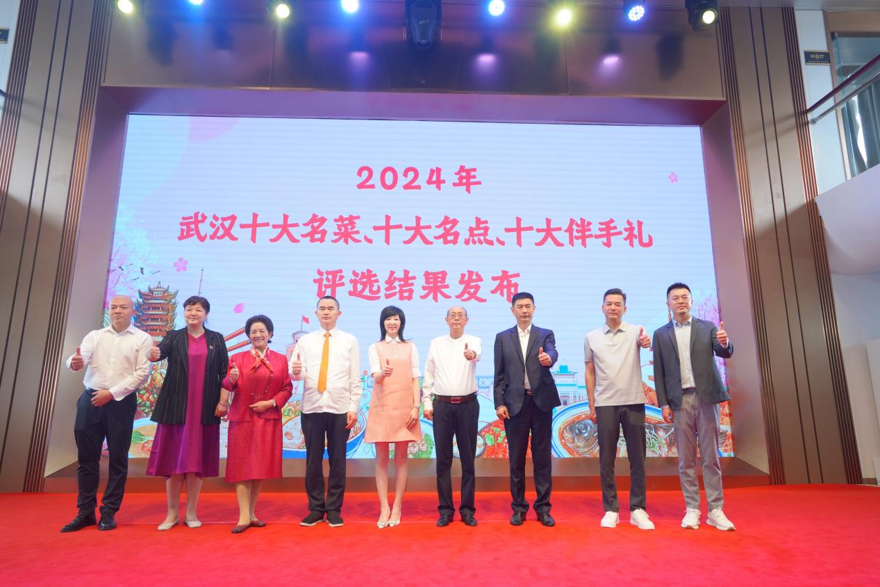 | 4月29日上午,由武汉餐饮业协会和武汉市旅游协会主办的武汉“十大名菜、十大名点、十大伴手礼”揭幕盛典在武汉“长江荣耀号”游船上隆重举行。中国象棋特级国际大师柳大华、全国劳模熊汉仙、湖北省文联副主席国家一级演员陆鸣、湖北省烹饪酒店行业协会会长孙桃香、武汉商业总会会长张宪华、武汉话剧院党委书记副院长周锦堂、中国旅游研究院武汉分院院长胡静、武汉餐饮业协会会长刘国梁、武汉旅游协会会长姜红宝等,以及来自餐饮和旅游行业的优秀企业代表,百余位嘉宾及媒体记者共同见证了这历史性的一幕。  为了加快餐饮业品牌化、连锁化高质量发展,助力农业产业化,推动商文旅深入融合,丰富消费供给,加速培育武汉建设国际消费中心城市,2024年1月5日,由湖北省烹饪酒店行业协会、武汉商业总会指导,武汉餐饮业协会和武汉市旅游协会主办的武汉“十大名菜、十大名点、十大伴手礼”评选活动拉开帷幕。活动历时两个多月,引发全城关注、全网热议,经各方征集、专家初选和网络投票后,评选结果正式出炉(名单附后)。 在揭幕盛典现场,世界中餐业联合会会长邢颖特地发来视频贺辞,对此次评选活动圆满举办表示衷心祝贺,并表示希望楚菜发展的越来越好,出圈出海。接着,十位嘉宾走上舞台,共同开启了武汉“十大名菜、十大名点、十大伴手礼”的发布。