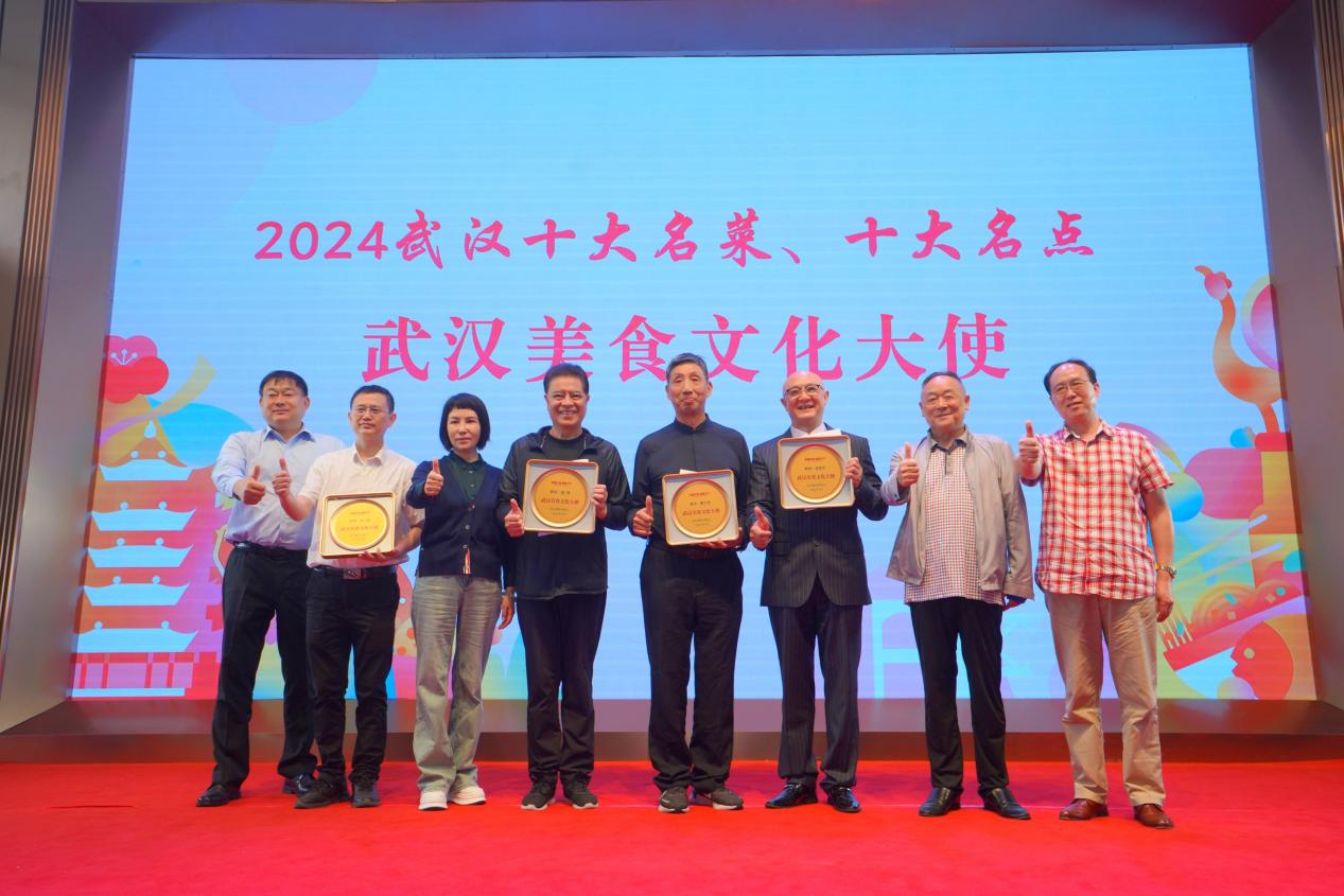 随后,武汉餐饮业协会为在评选活动中积极参与的11位幸运市民授予了“名菜、名点”推荐官称号和价值5000元的小米手机及价值17000元的华为折叠屏手机。同时,武汉旅游协会为10家伴手礼获选单位进行了授牌。 值得一提的是,为了让“名菜、名点”响彻海内外,组委会此次还聘请了中国象棋特级国际大师柳大华、九州通医药集团创始人刘宝林、湖北省文联副主席国家一级演员陆鸣、武汉话剧院党委书记副院长周锦堂为武汉美食文化大使。作为武汉美食文化大使的陆鸣老师,还特别对武汉“十大名菜、十大名点”进行了精彩有趣的推荐。
