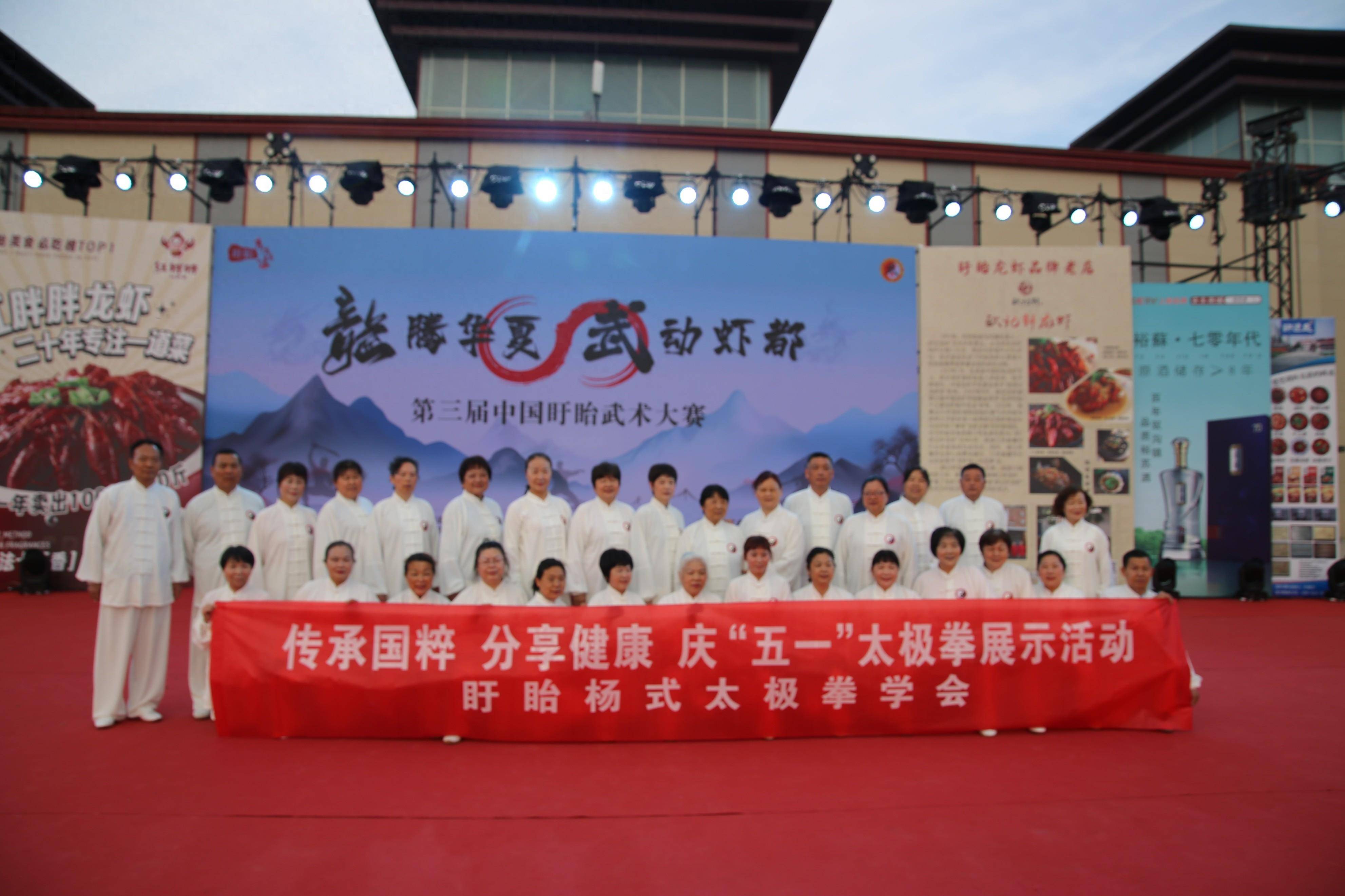 2024年5月3日,“龙腾华夏 武动虾都”中国盱眙第三届武术大赛在县委、县政府的正确领导下,在盱眙万人龙虾节广场圆满落幕。来自全国(含港、澳)各地的二十多支代表队200余名运动员同台竞技。5月1至3日,选手们奋力拼搏,激烈角逐,赛出了成绩、赛出了风格、赛出了风采、赛出了友谊。