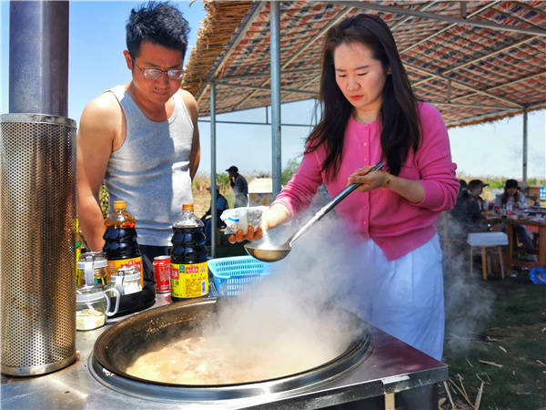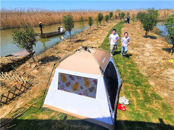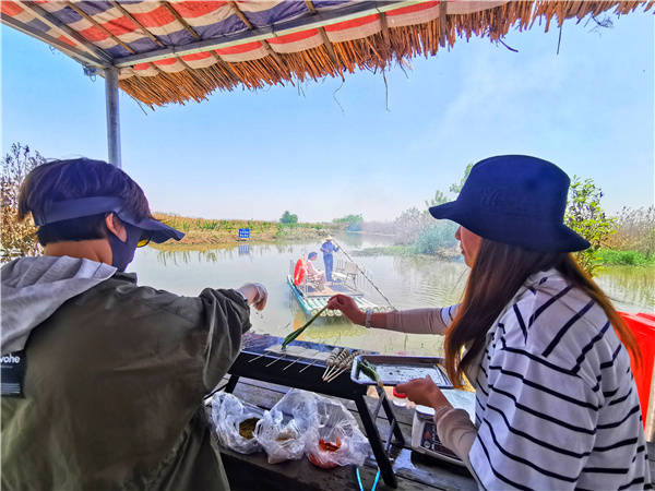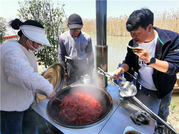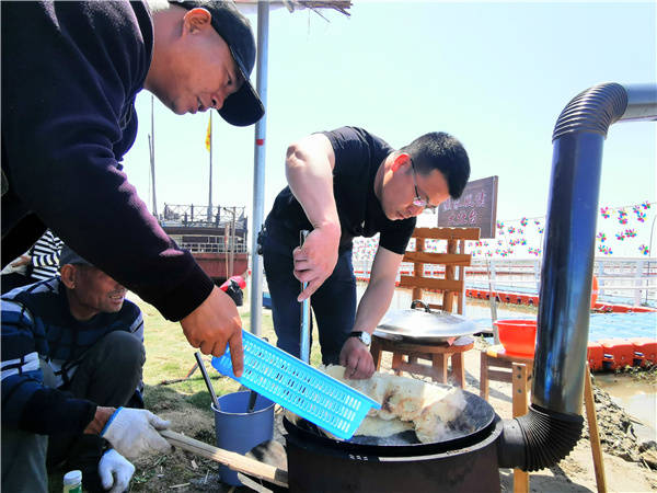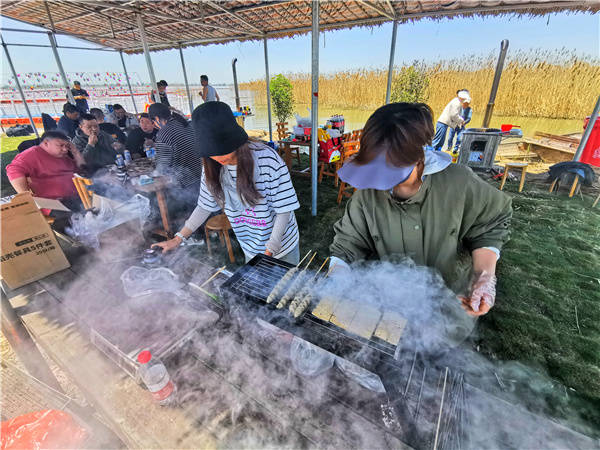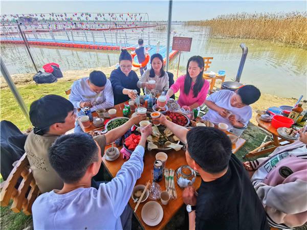 5月1日, 江苏洪泽湖畔全国最美渔村一一老子山镇新滩村吸引了慕名而来的浙江,上海,南京等地的周边游客络绎不绝的上岛垂钓 游览 现场体验渔家大灶台野趣 品尝渔家特色土菜。新滩村位于全国文明镇 、省级旅游度假区老子山镇北部 村内生态良好 资源丰富 水产品养殖面积8000余亩, 滩面现有2000亩芦苇荡,5000亩荷花荡 素有靓美渔村、域外桃源之美誉,先后荣获“江苏美丽乡村”,“江苏省生态文明建设示范村”,“江苏省文明村”,“国家级最美渔村”等荣誉称号。 (桂宝林 曹国梁 孙永超摄)