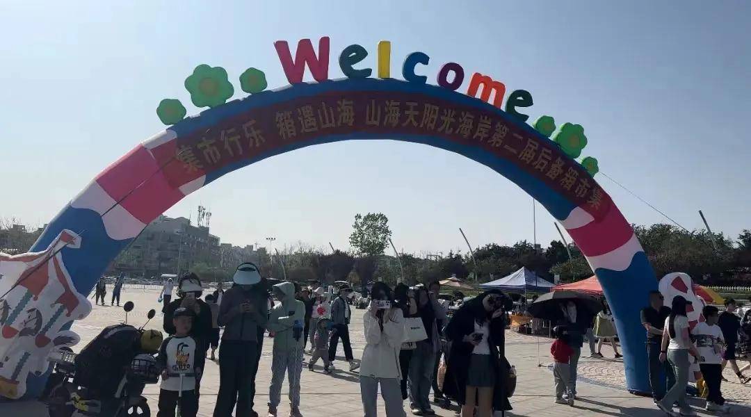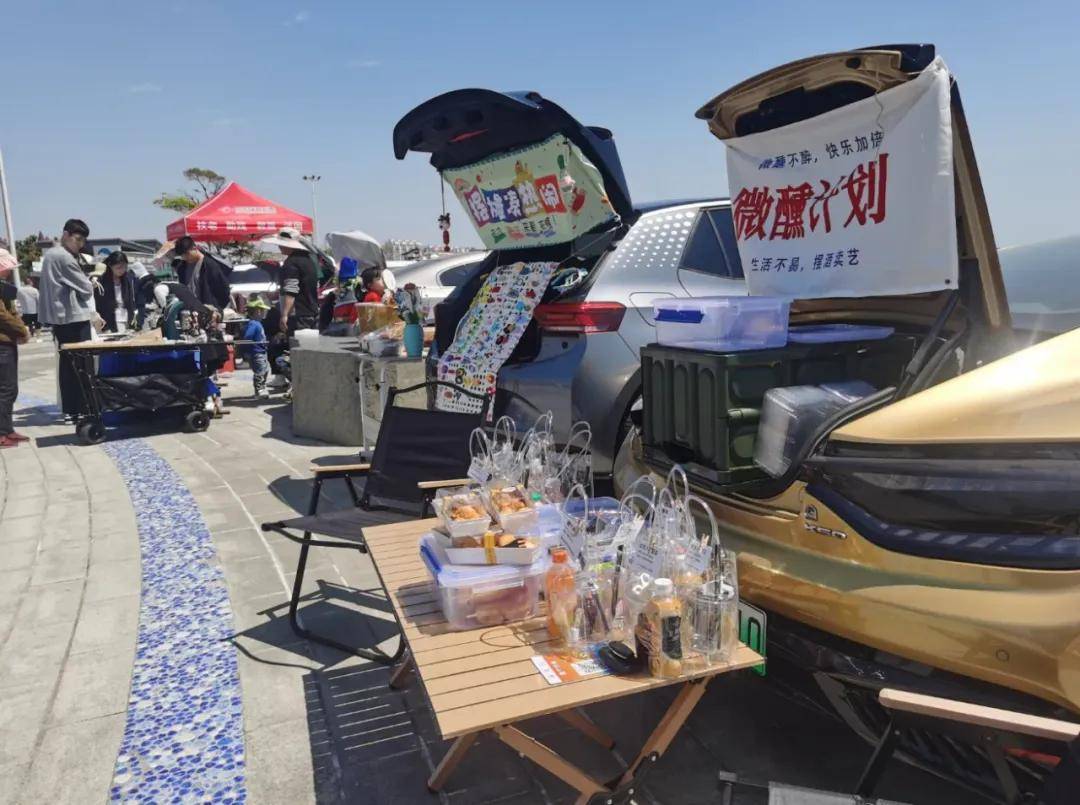 阳光海岸后备箱集市 5月1日,一场别开生面的广场后备箱集市活动在山海天阳光海岸成功举办。活动现场汇聚了52个创意摊位,摊主们纷纷展示出自己的特色商品,为游客们带来一场丰富多彩的消费盛宴。