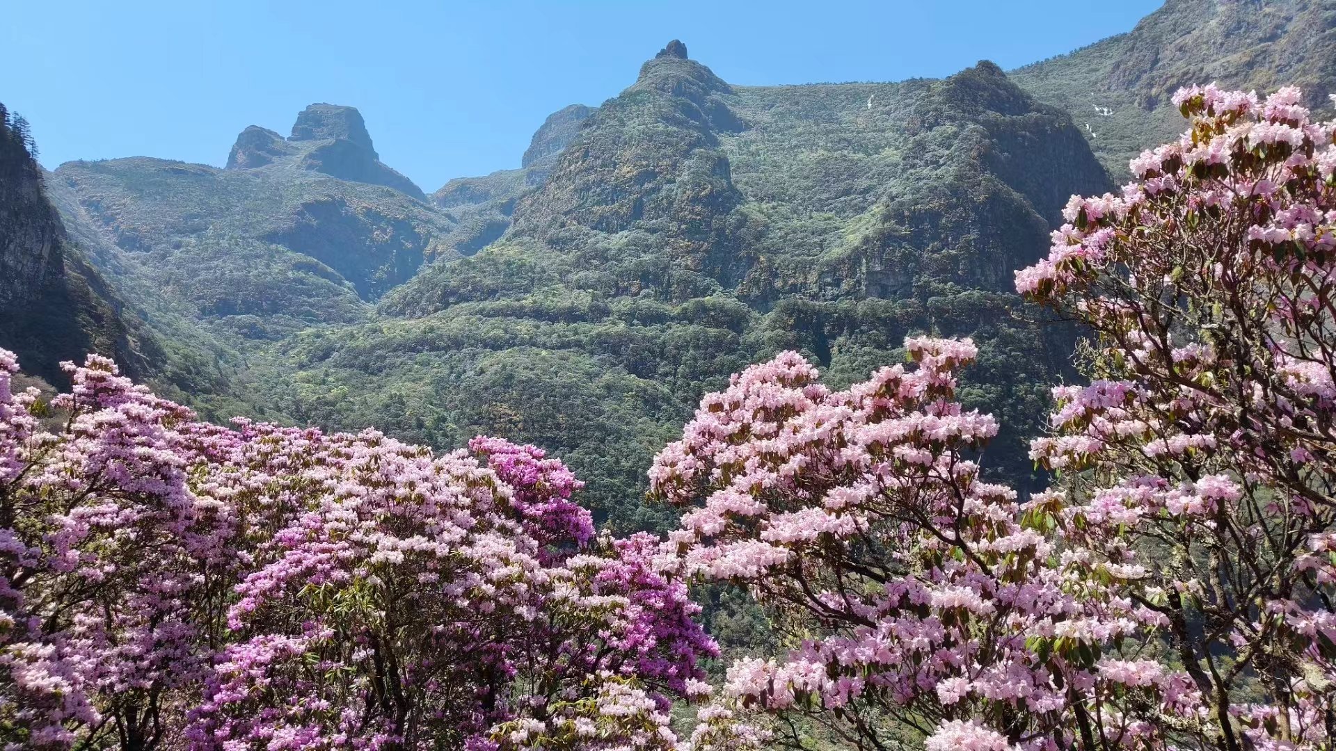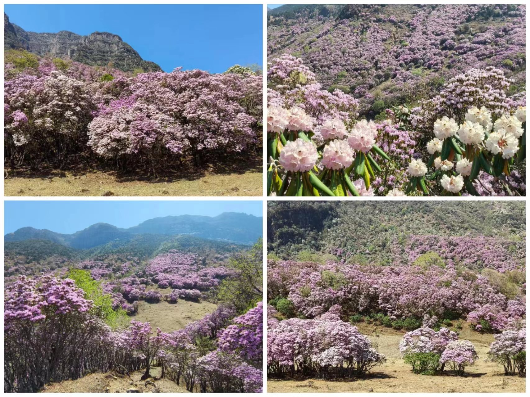 随着冬日雪白的童话世界在轿子雪山山顶渐渐消融,数十种野生杜鹃花在山脚悄然绽放。今年是杜鹃花盛开得最好的一年,花期从 4 月一直持续到 6 月底,从山脚到轿顶都有分布,任何时候来都可以欣赏到其中几种杜鹃花。不知不觉中,山坡从洁白无瑕变成了七彩的海洋。