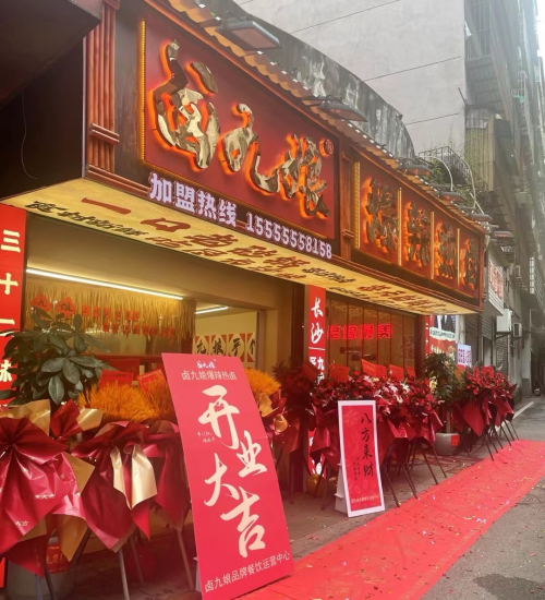2024年5月2号上午卤九娘品牌爆辣热卤正式对外营业。市井风、怀旧风格装修、墙上贴满了各种网红文案、励志的、自黑的、搞笑的、正能量的让卤九娘品牌爆辣热卤在试营业期间就成为江西上饶金龙岗的网红打卡点,每位来卤九娘品尝过的粉丝都赞不绝口。