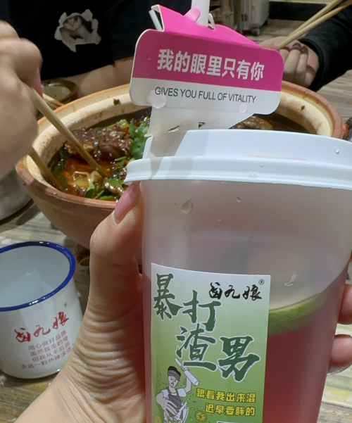 卤九娘品牌创始人姜蓉蓉剪彩仪式现场 卤九娘爆辣热卤餐饮板块以湖南口味为主,主理人00后的湘妹子龙佩三代人做卤味,独家非遗砂锅秘方,配以几十种香料制作,远远香气扑鼻,虽然卤九娘爆辣热卤旗舰店位于江西上饶金龙岗大井头的小巷子里,但真的是砂锅香不怕巷子深,闻着香味而来的食客一个礼拜来七次都吃不腻!在上饶,吃长沙是卤九娘爆辣热卤口号,主打一个爆辣,都说江西人能吃辣,能挑战一定辣度的粉丝们可以赴约比试一下了!