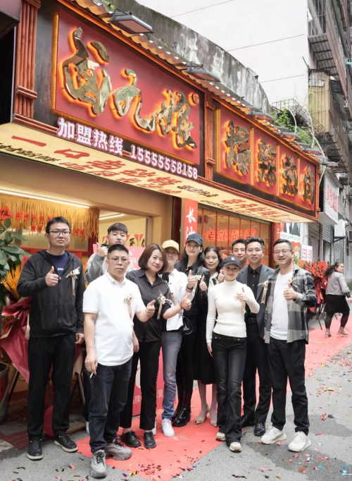 卤九娘爆辣热卤团队成员 5.2号开业当天,卤九娘爆辣热卤旗舰店门头摆满了花篮,正红色的开业大吉几个字非常显眼,也是好的兆头。到场参加开业嘉宾有:上饶市政协常委、上饶市工商联副主席、酒快马连锁品牌创始人董事长:汪泽林;闽业控股集团周子;合义文旅 杨姬、合义文旅黄钊、华盟科技有限公司 汪今华、上饶小黑文化传媒有限公司 毛祖强、楚王龙虾杨克龙、宿迁玩家国度女企业家 毕书华、姜晓晓、林哲民以及卤九娘爆辣热卤品牌创始人及股东、团队:姜蓉蓉、汪金鹏、晓晓、龙佩、杨怡鑫、廖航等出席