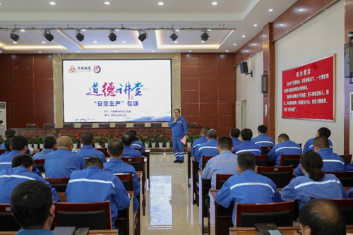 近日,潞安化工天脊集团党委举办了一场由看警示短片、安全标兵话安全、集体诵读安全理念、观众现场谈感悟、安全协管员送承诺六个环节组成的安全生产专场道德讲堂。该集团党委书记、董事长畅学华,党委副书记、工会主席田志斌,副总经理李剑川参加。