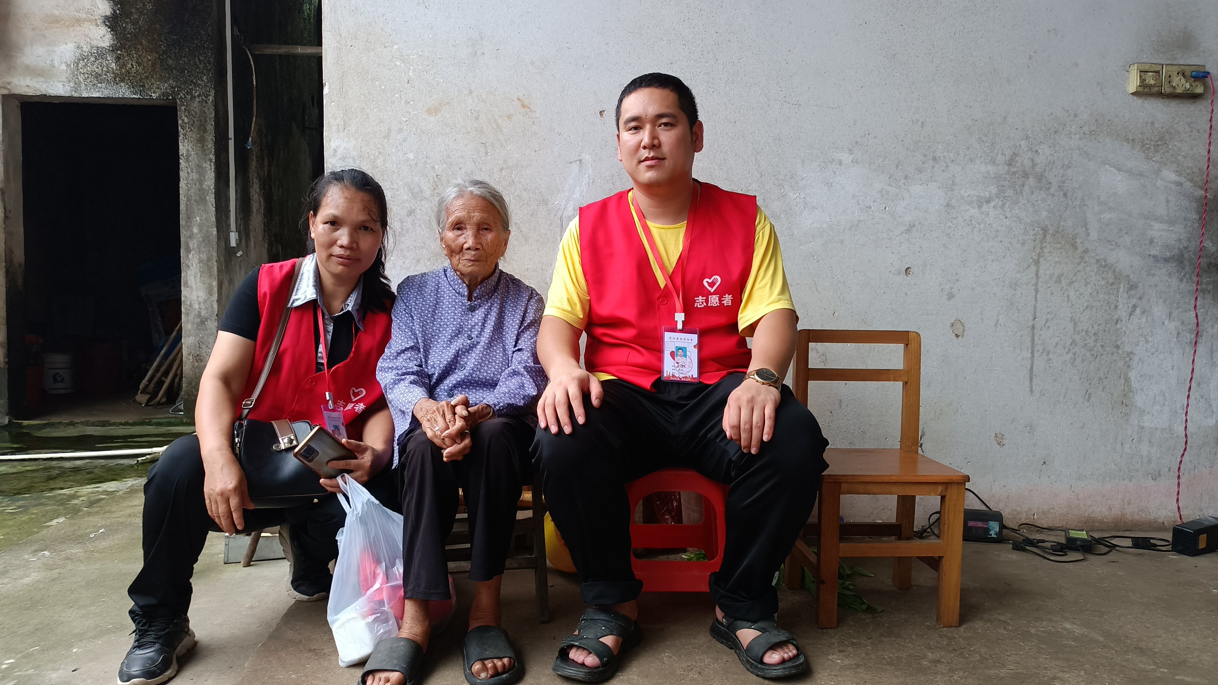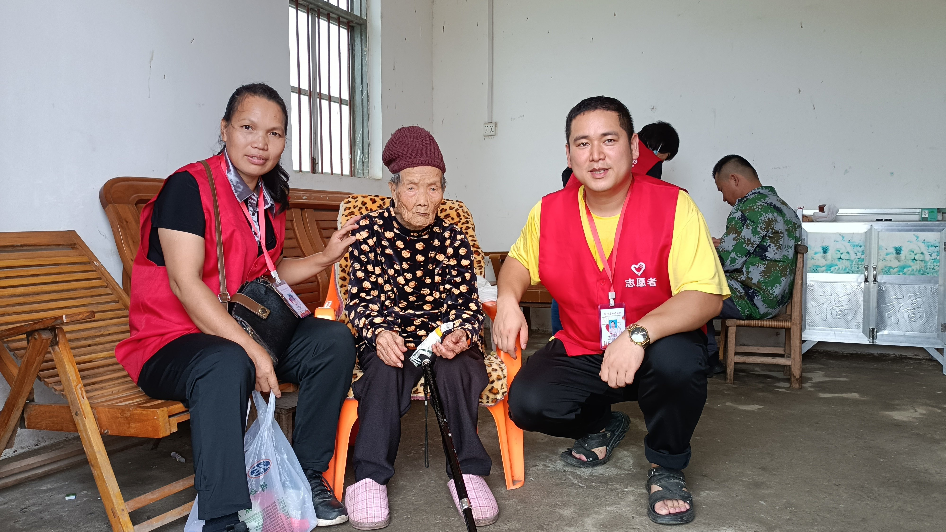 今天参加公益活动关爱百岁老人的志愿者名单:李扬光,莫翠兰,潘丽青,田娜,廖欢。