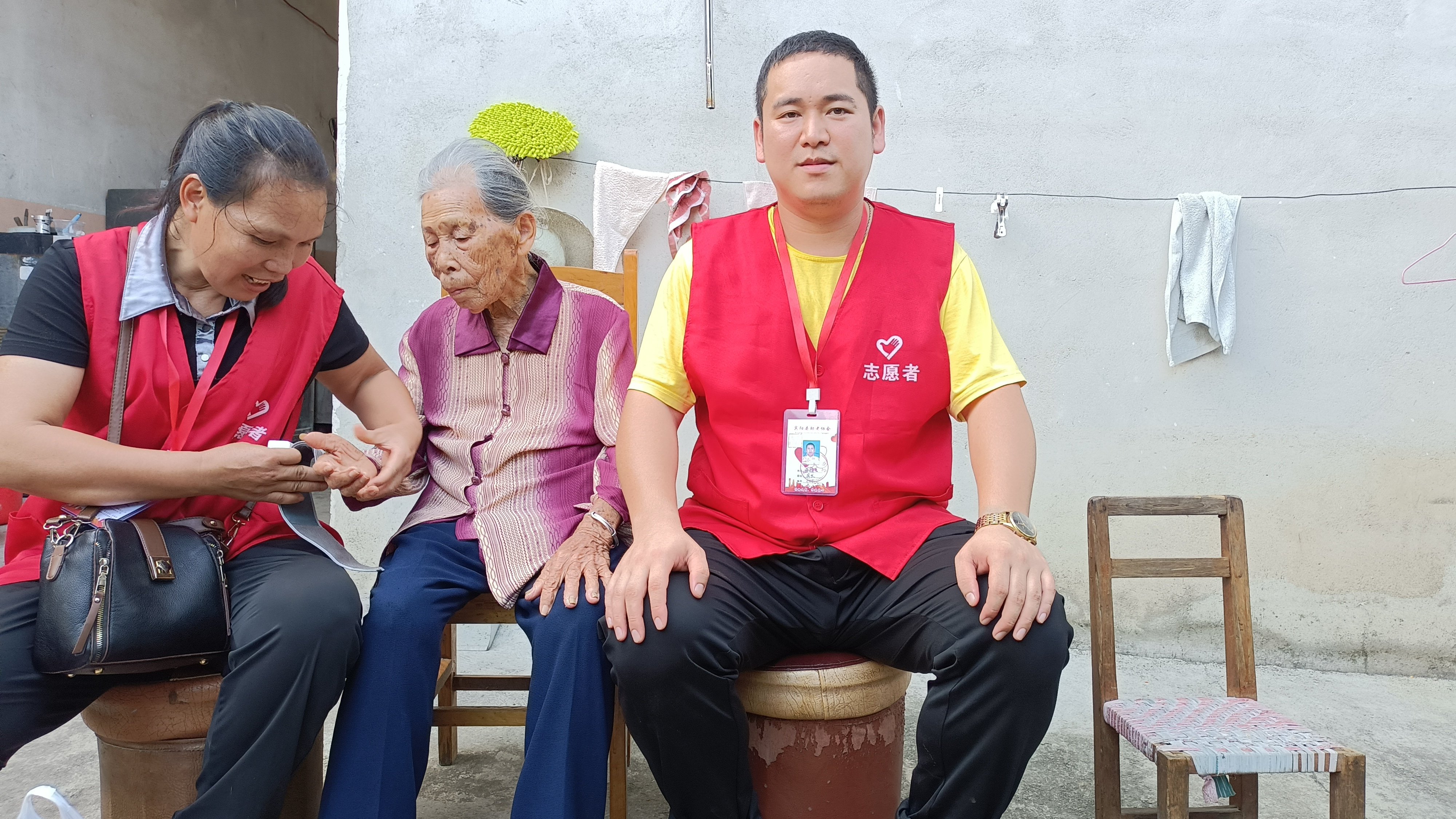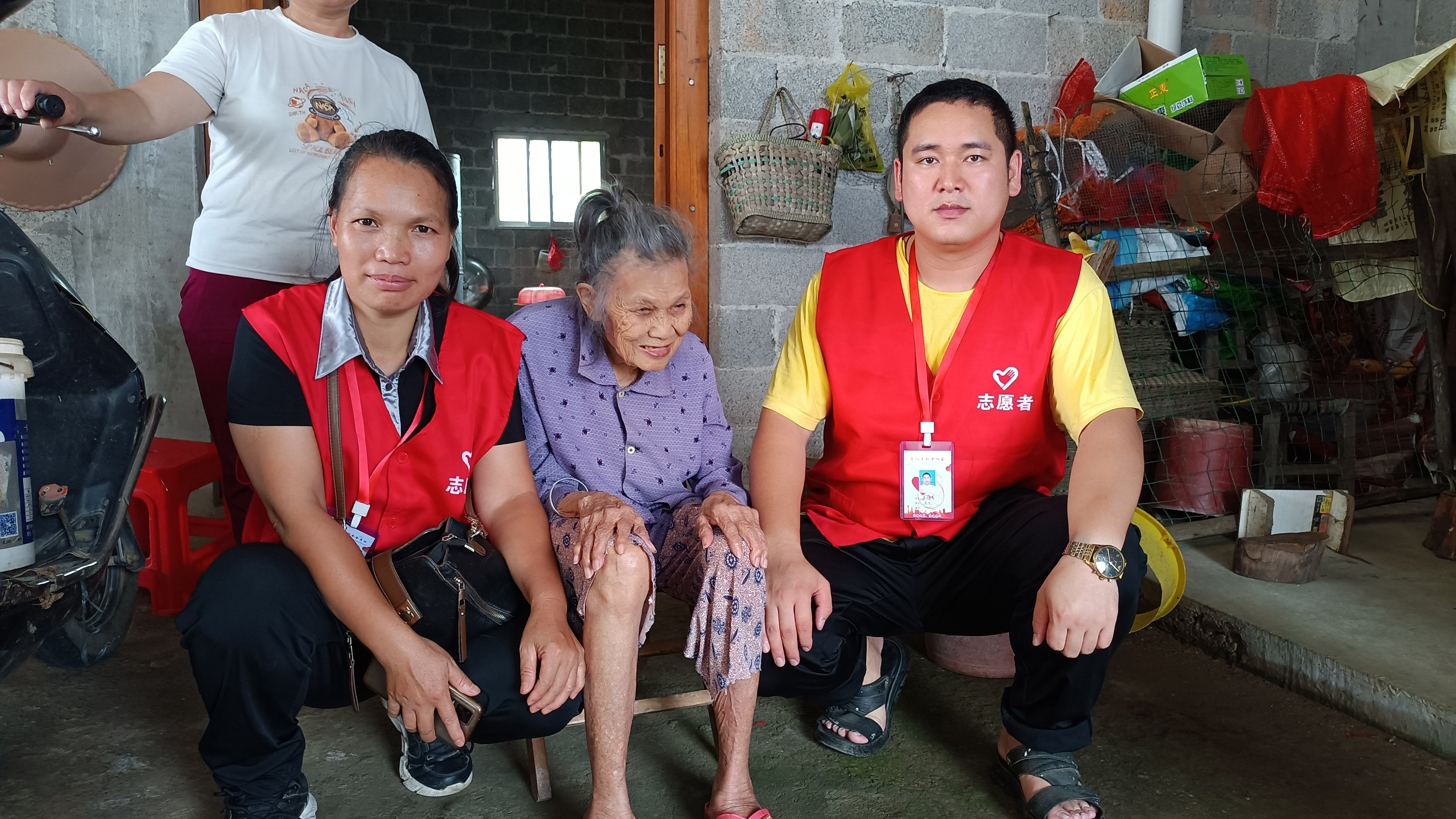 宾阳县助老协会在大桥镇兴宁村委大山村看望102岁老人:程民芳(老奶奶),身体状态:生活不能自理,腿脚疼,行动不便,由家人照顾,高压:173,低压:87,心率:86,体温检测:36.6度。每月领取国家高龄补贴400元1月,养老金146元,四世同堂。村委书记:黎小莲,带队干部:张积韬(文书),黎小莲(书记),家属:张德亮(儿子)。