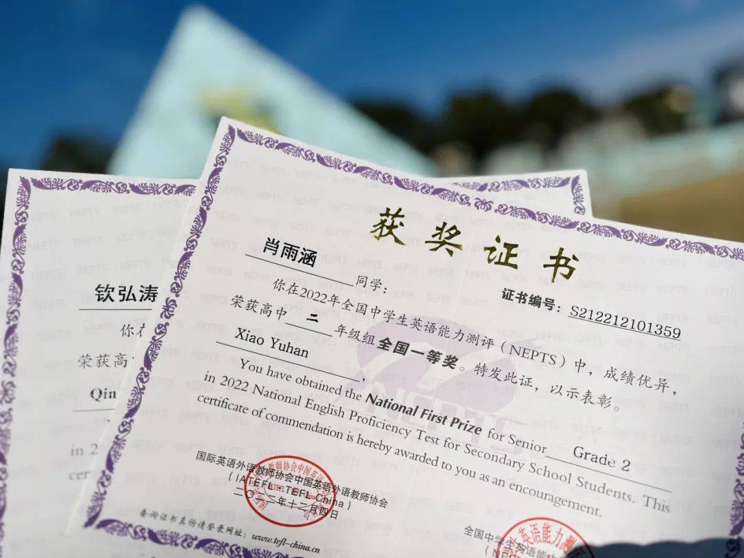 在2022年“第三十届全国中学生英语能力测评”竞赛中,枫华普高学子发挥出色,成绩斐然:全国一等奖3名,全国二等奖4名,全国三等奖12名。