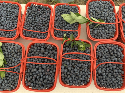 “这些蓝莓都是预定了的,等会就要送到各客户手中。”李国松指着10多篮蓝莓高兴地说。 一口一颗,轻轻一嚼,立马能感受到蓝莓浓郁的香甜气味从舌尖上升到脑门,清甜的果汁舒服全身…… 李国松介绍,他家是从2018年开始种植蓝莓的,一共有20多亩,现在每亩产量至少1000斤以上。有纯甜的奥尼尔,九甜一酸的珠宝,有芒果香味的双丰,成熟最早的是H5,有花香味的L25等10多个品种。有着果形大、口感好的特点,市场认可度比较高。平时,用羊粪和菜籽饼当肥料,追求蓝莓原本的风味,确保蓝莓品质优良,可以采摘到6月中旬。