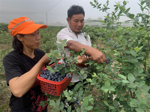 进入5月,位于浙江省武义县履坦镇履二村新园新村西面李国松、开云飞夫妇的蓝莓基地迎来成熟季。枝叶肥厚的蓝莓树上挂着青、蓝交辉的果实,夫妇两正忙碌地穿梭在蓝莓树丛间,欢快地采摘着颗颗“致富果”,也不时有游客过来采摘。